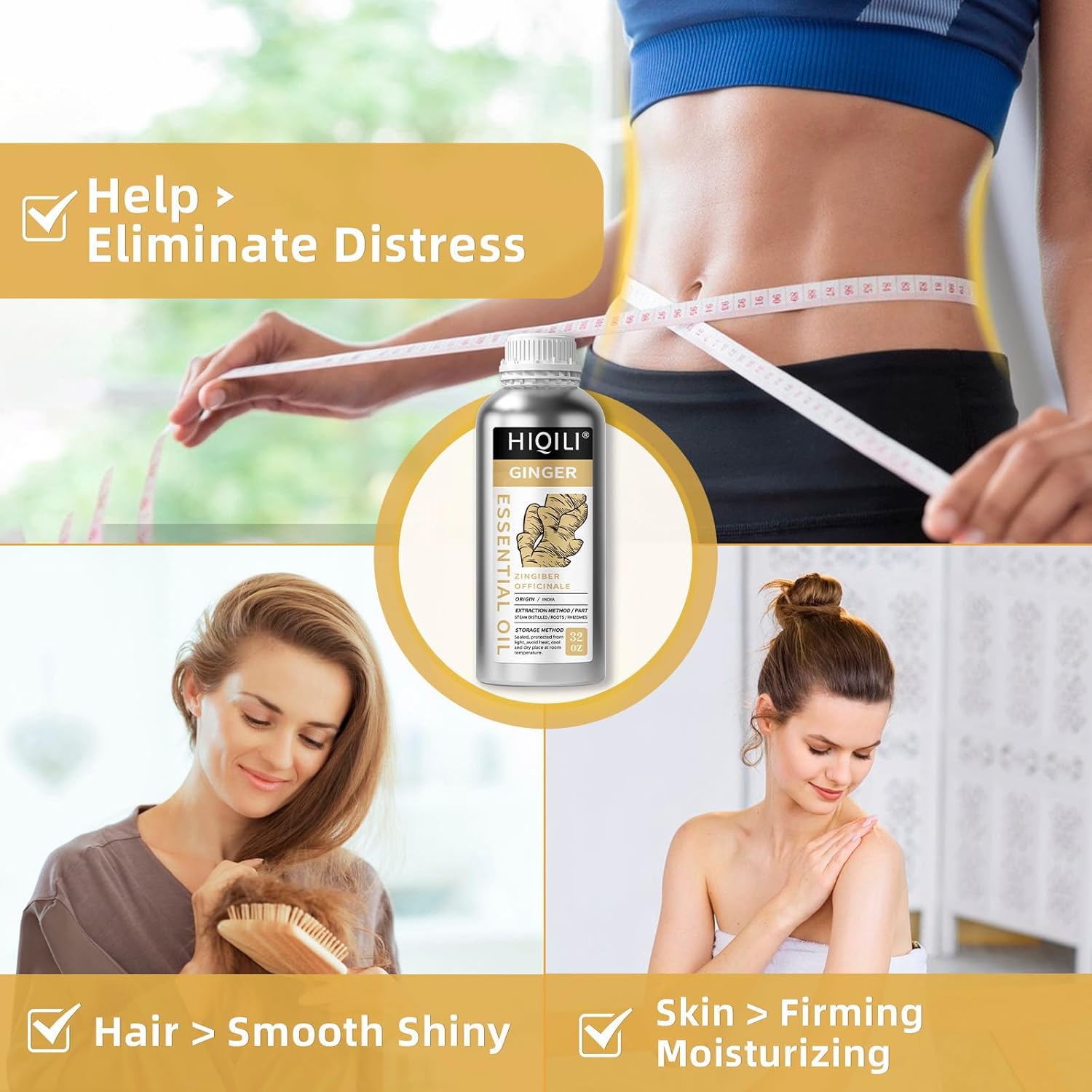 HIQILI 32 Fl Oz Ginger Oil, 100% Pure Natural Ginger Essential Oil for Hair, Massage, Skin - 1000ML
