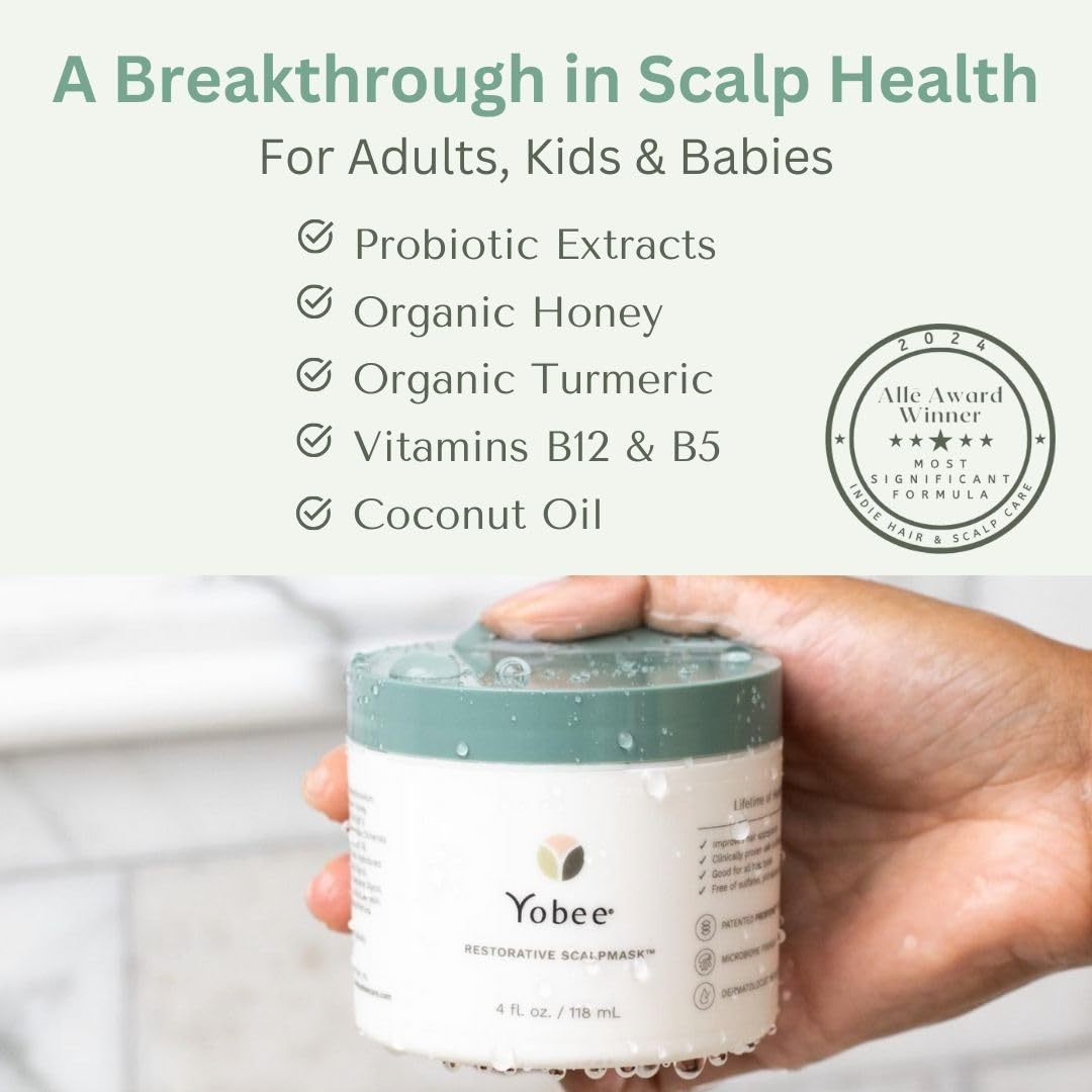 Yobee Restorative Scalp Mask - Dry Scalp Treatment Hair Mask - Probiotic Extracts, Organic Honey, Turmeric, Vitamin B12 - Natural Dry, Itchy, Sensitive Scalp and Dandruff Relief - for Adults, 4 fl oz