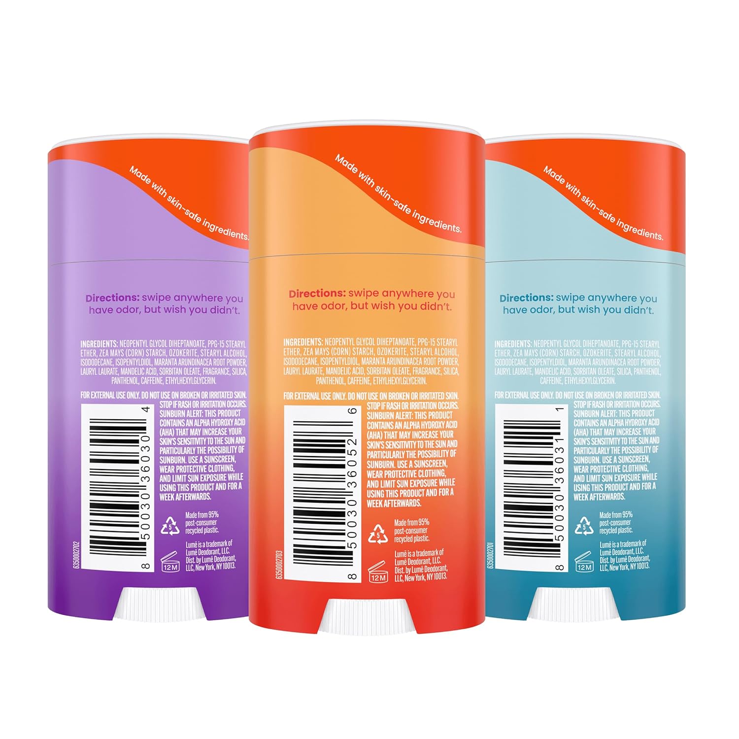 Lume Whole Body Deodorant - Smooth Solid Stick - 72 Hour Odor Control - Aluminum Free, Baking Soda Free and Skin Safe - 2.6 Ounce (Pack of 3) (Clean Tangerine, Lavender Sage, Unscented)