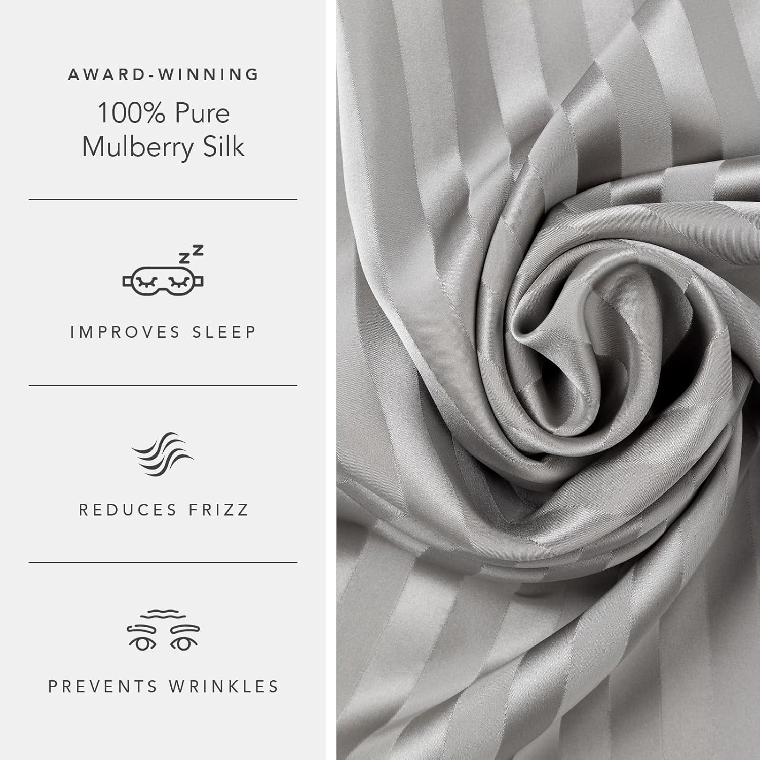 Fishers Finery 25mm 100% Pure Mulberry Silk Pillowcase (Gray Stripe Queen)