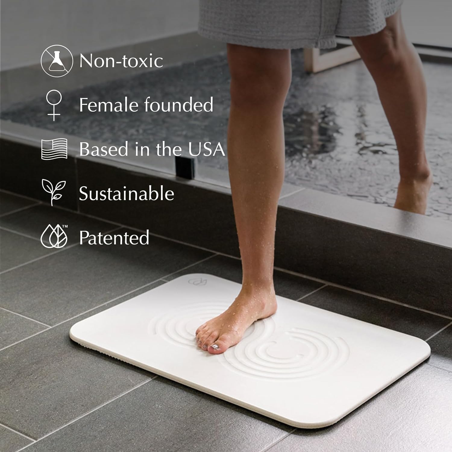 - THE ORIGINAL STONE BATH MAT: Upgrade your bathroom with the Dorai Stone Bath Mat, crafted from diatomaceous earth and recycled paper. Our instant-drying bathroom mat keeps floors dry with a chic design.