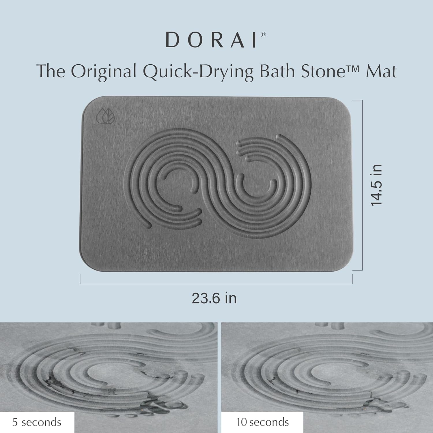 - THE ORIGINAL STONE BATH MAT: Upgrade your bathroom with the Dorai Stone Bath Mat, crafted from diatomaceous earth and recycled paper. Our instant-drying bathroom mat keeps floors dry with a chic design.