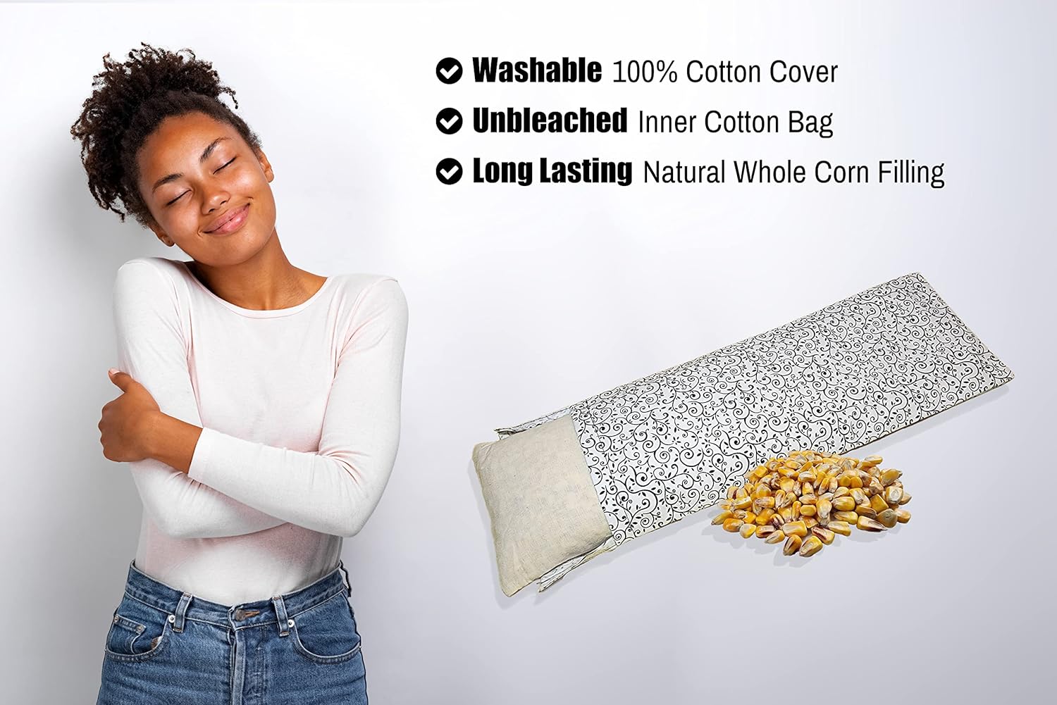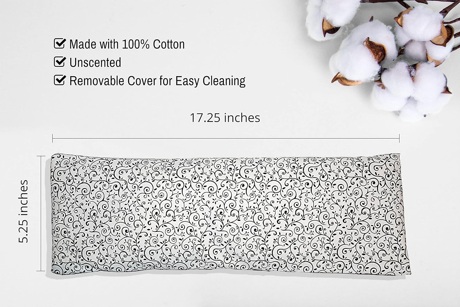 Microwavable Corn Filled Heating Pad and Cold Pack/Washable 100% Cotton Cover (Vines - Black and White, 5.25in W x 17.25in L)