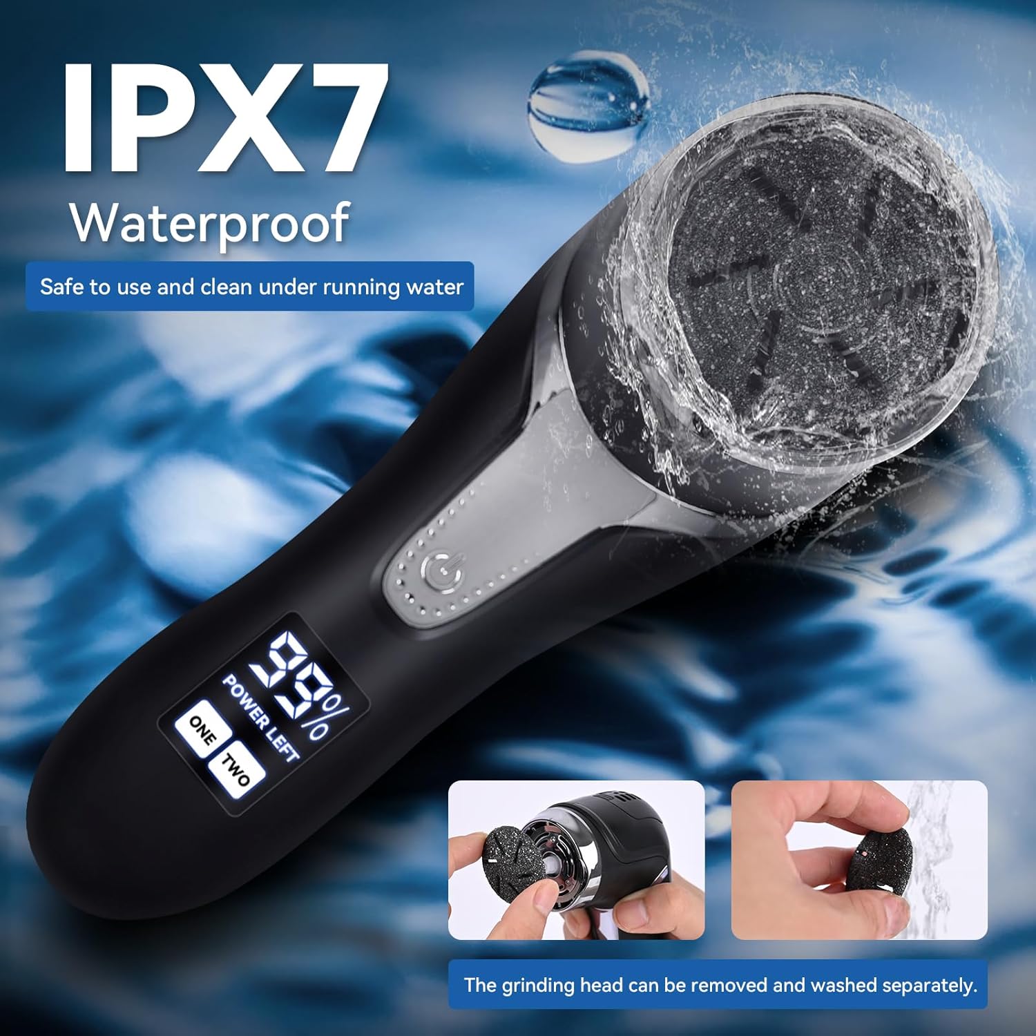 - 【IPX7 Waterproof and Lightweight】IPX7 waterproof design, this electric foot callus remover can be cleaned under tap water or soaked in water, making it easier to remove dead skin and calluses and easier to clean. This foot callus remover tool is lightweight and portable, and can be easily stored in a backpack or washbag.