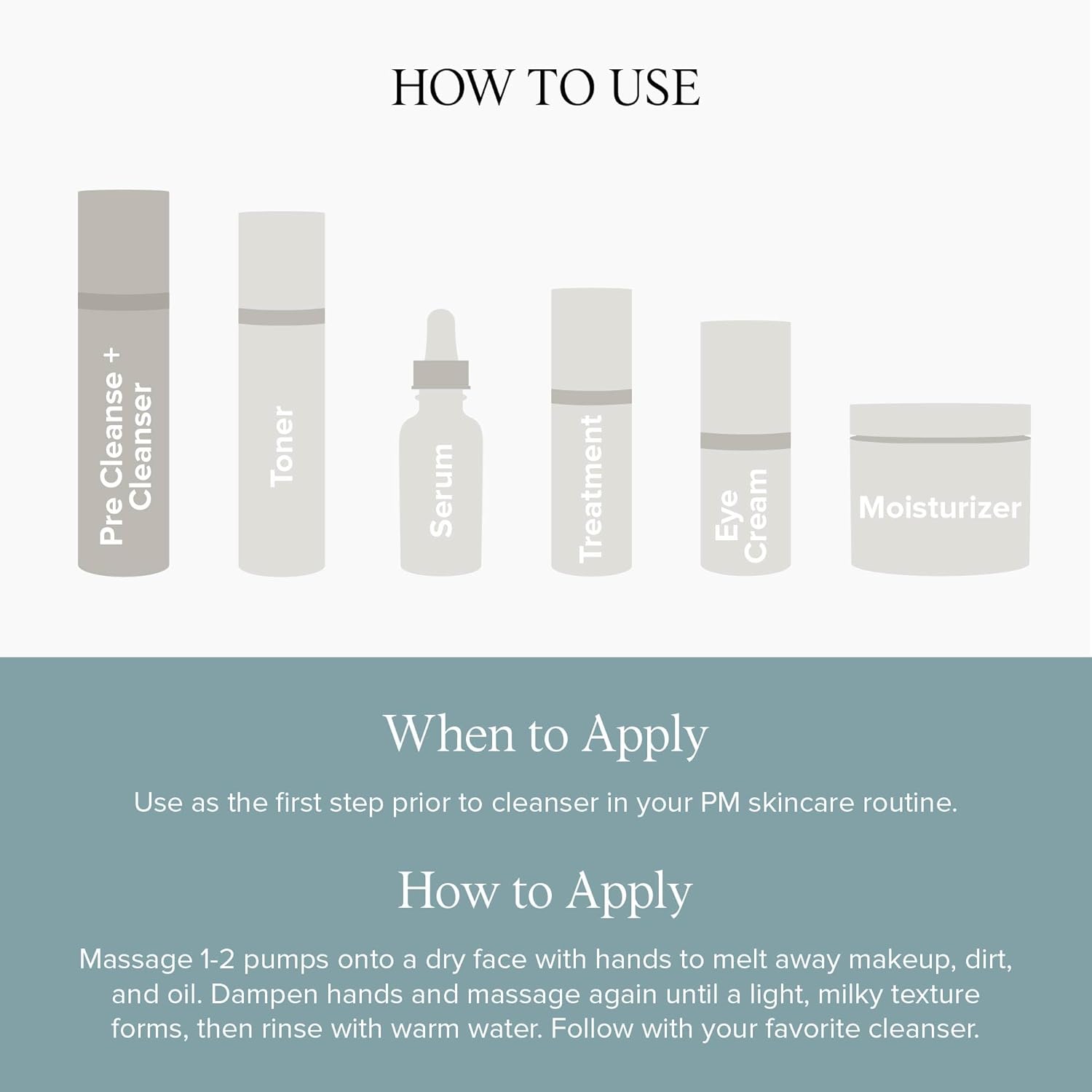 - Pair with Your Favorite Cleanser: The pre-cleansing oil lifts and melts away makeup, dirt, and excess oil, allowing your cleanser to actually cleanse your skin, instead of being blocked by grime and debris.