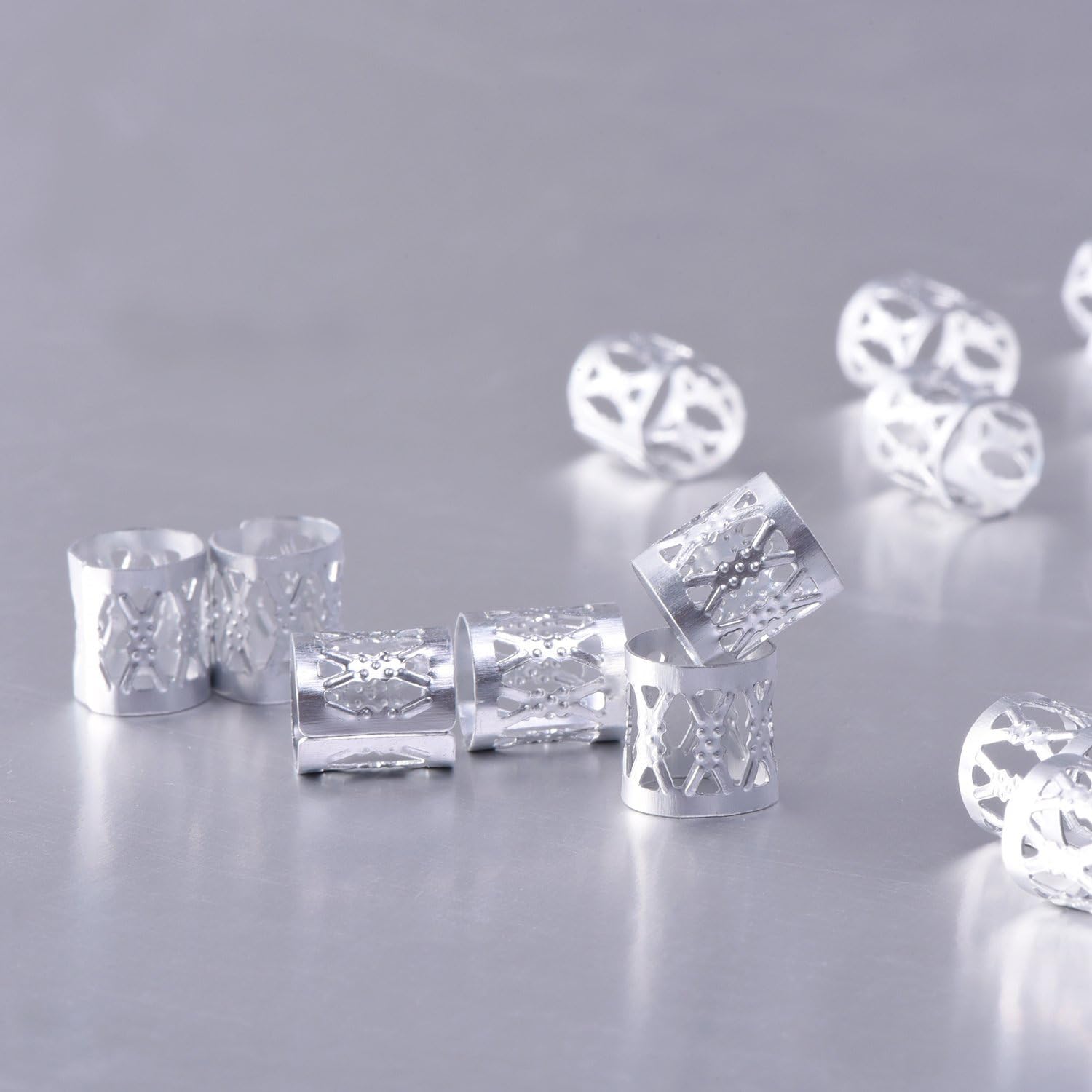 - Create versatile hairstyles with ease using our durable metal braid rings, available with 50 pieces of silver.