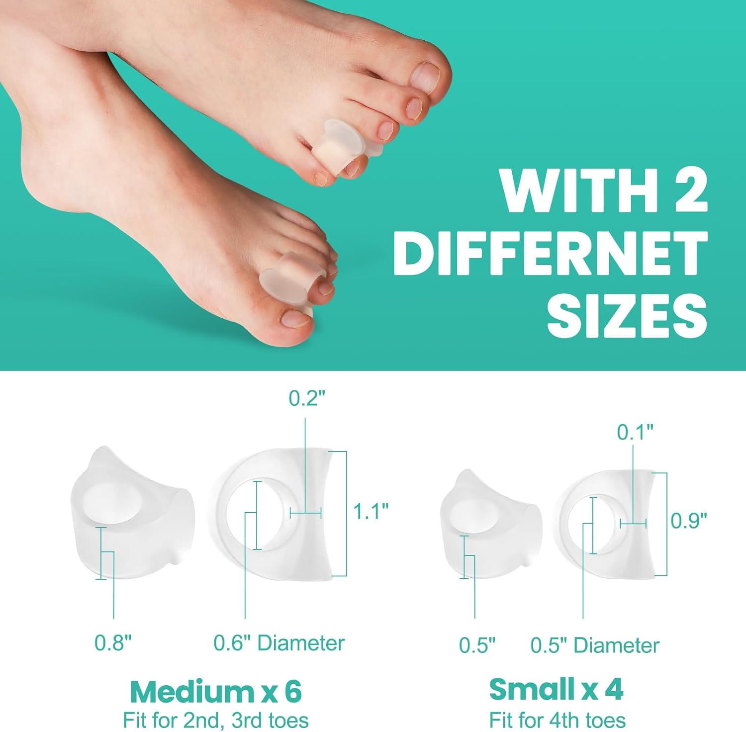 - What you get - We offer our bunion toe spacer in different sizes (Including a 6-pack of medium size fit for 2nd and 3rd toes, and a 4-pack of small size fit for 4th toes). Our toe separators are suitable for both men and women, and they're comfy and effective for anyone who needs relief from foot pain.