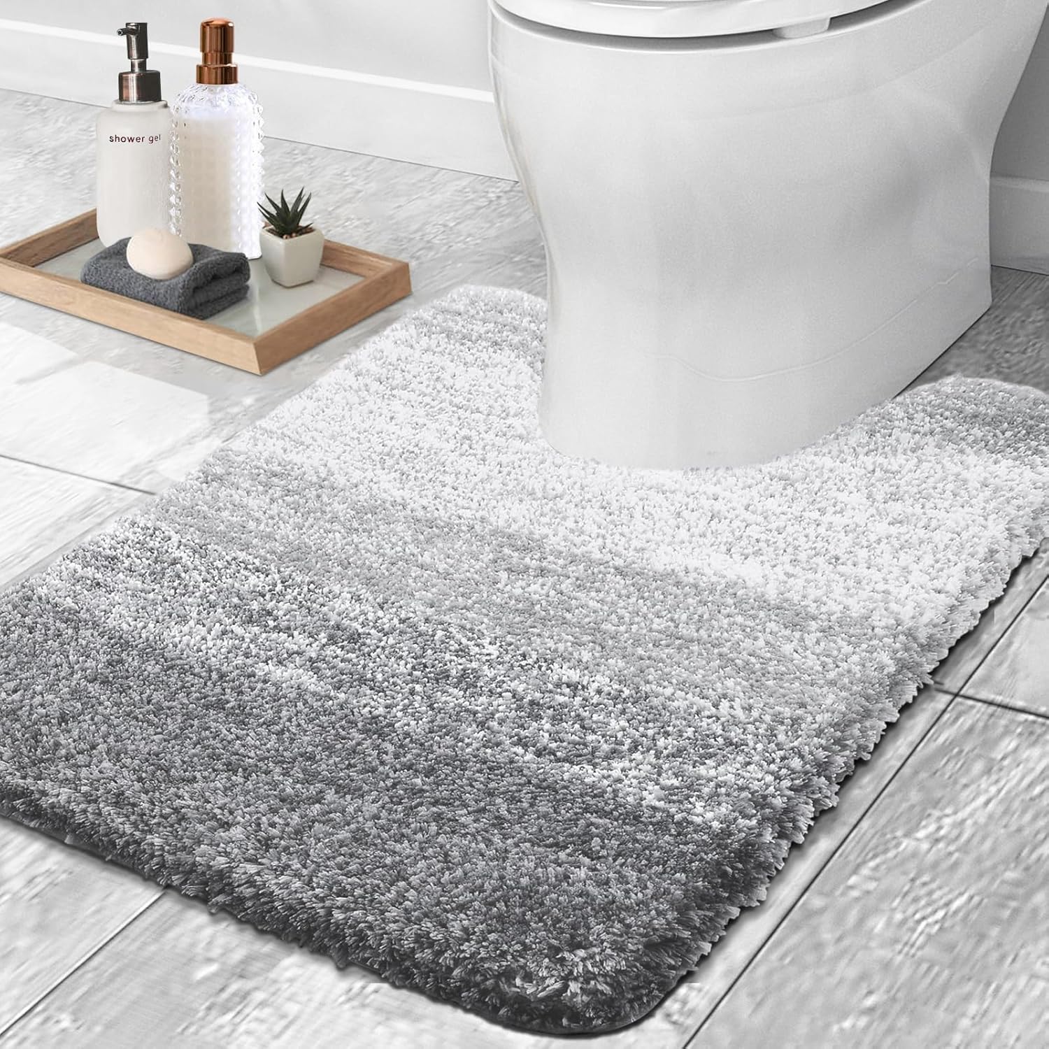 OLANLY Luxury Toilet Rugs U-Shaped 24x20, Extra Soft and Absorbent Microfiber Bathroom Rugs, Non-Slip Plush Shaggy Bath Mat, Machine Wash Dry, Contour Bathroom Mats for Toilet Base, Light Grey