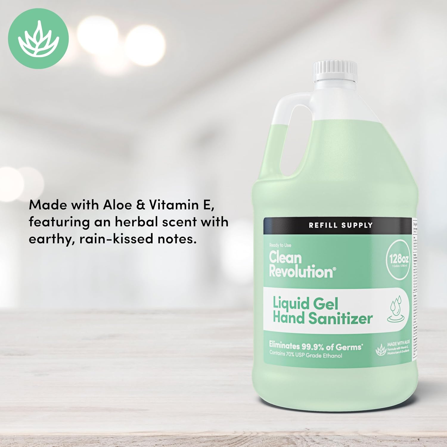 Clean Revolution Liquid Gel Hand Sanitizer, 128 Fl. Oz Refill Supply Container| Eliminates 99.9% of Germs | Gentle & Aloe Enriched | 70% USP Medical Grade Ethanol, Medical Facility Compliant