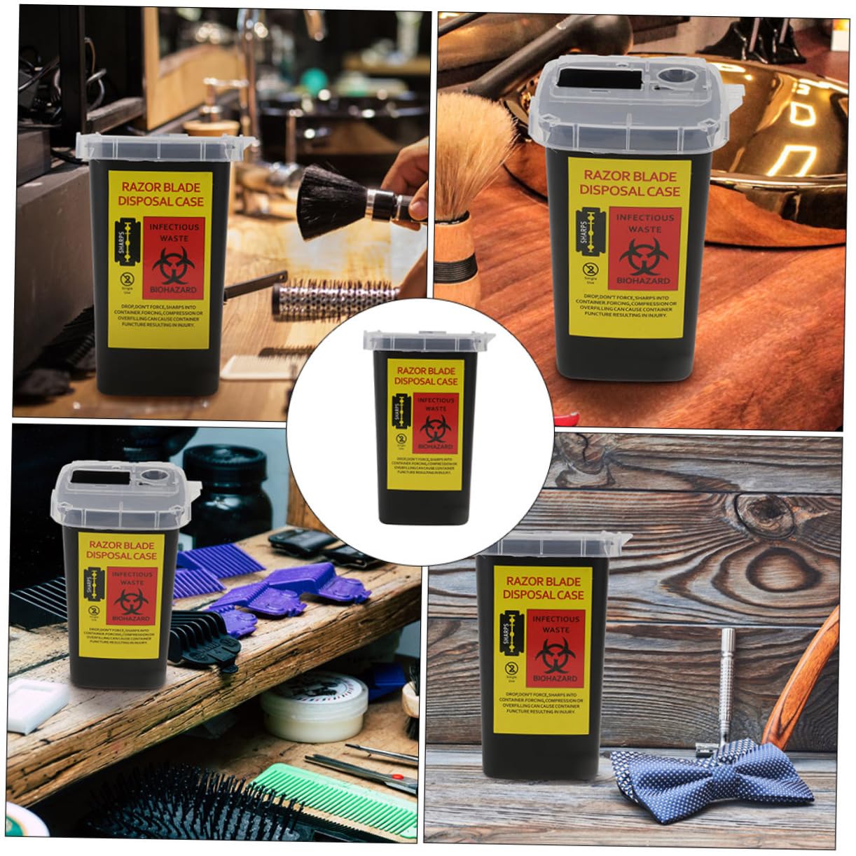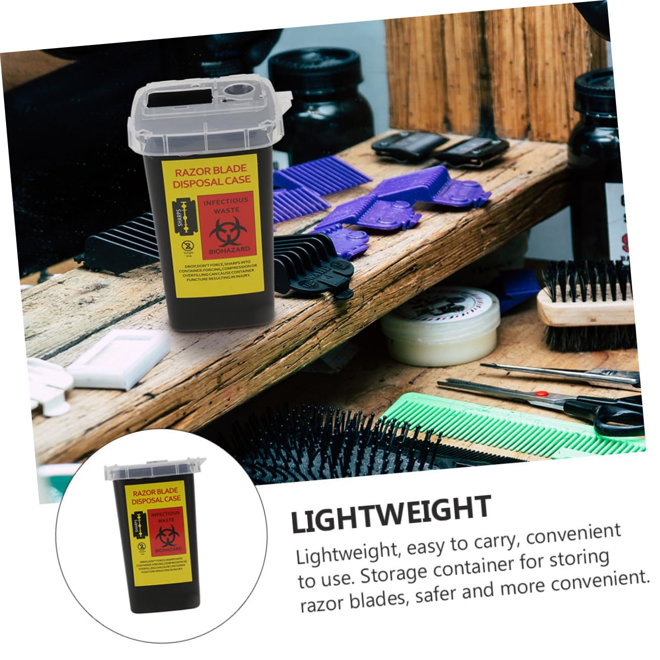 - 【Waste blades cases】 for traveling and on the go use. Fits easily into a medium sized purse backpack, gym bag, or luggage. Clear lid allows a view of the fill level, temporary closure for safety, and snap locks for final disposal