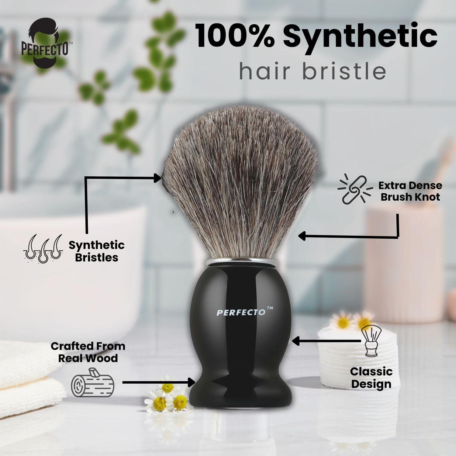 Perfecto Synthetic Bristles Shaving Brush For Men, Engineered for The Best Shave of Your Life. Shave Brush for Wet Shave for Safety Razor - Barbers Accessories, Gift For Him
