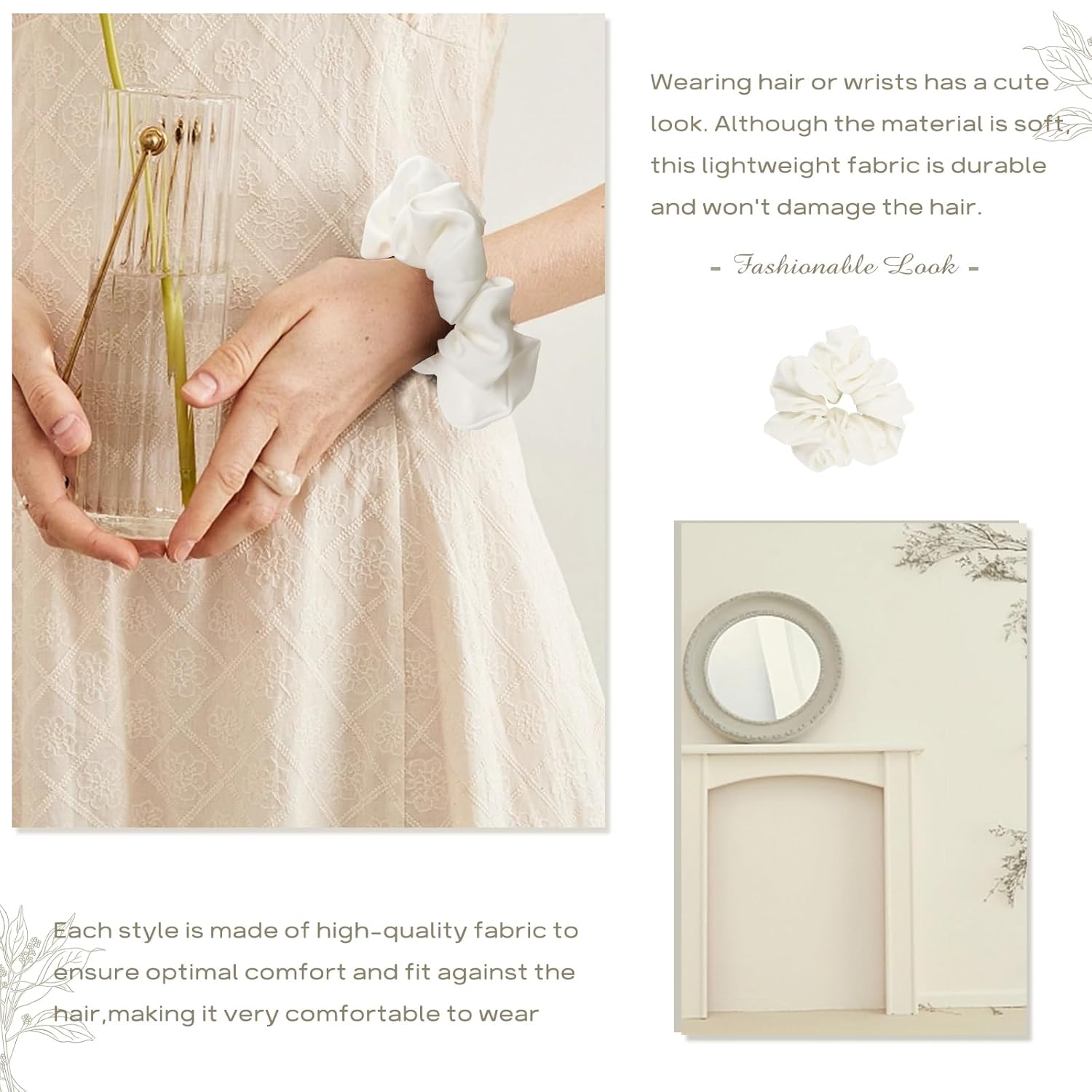 4PCS Large Silk Scrunchies for Women - Hair Elastics Handmade Scrunchie for Thick Hair Girl Hair Ties Ponytail Holders Jumbo Scrunchies (White)