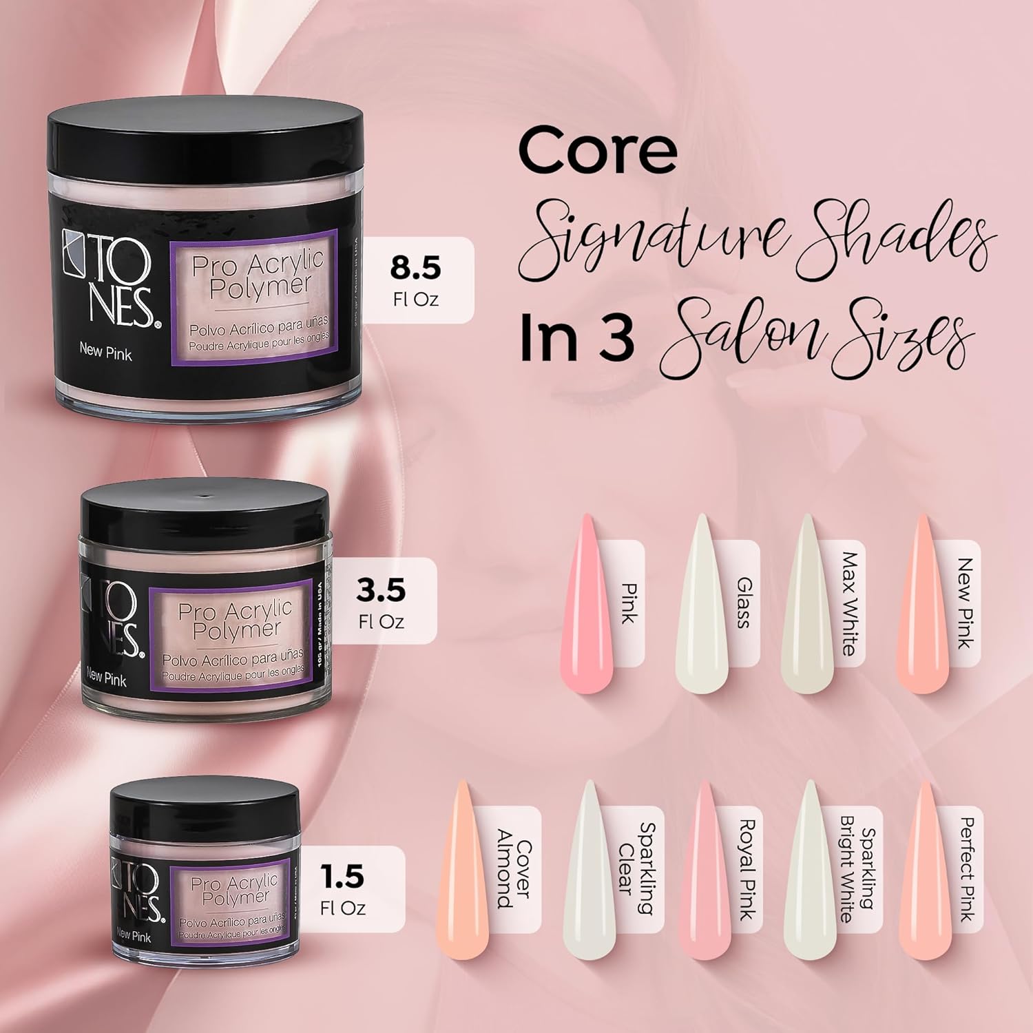 Tones Pro Acrylic Nail Powder, New Pink (Fresh Peach-Toned Pink), (3.5 Fl Oz) - Long-Lasting & Non-Yellowing Polymer for Salon Quality Nail Extensions & 3D Art