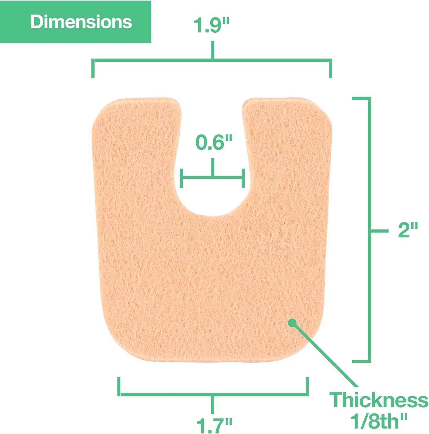 - Protect and cushion calluses on the bottom of your feet and heels with ZenToes horse shoe shaped felt callus pads. These generous foot cushions are approximately 1/8” thick. Across the top measures approximately 1.9”, the bottom 1.7” and 2” tall. The width of the interior of the U is approximately 0.6”.