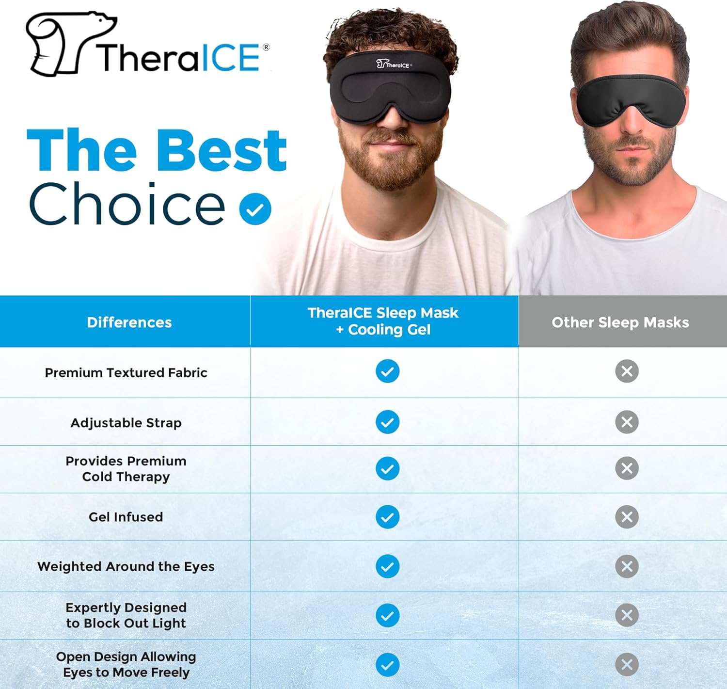 TheraICE Sleep Mask + Cooling Gel Relief - Sleep Eye Mask Blackout Blindfold Cold - 3D Contoured Relaxing No Pressure Eye Cover to Block Light for Comfortable Soothing Night Sleeping/Men & Women