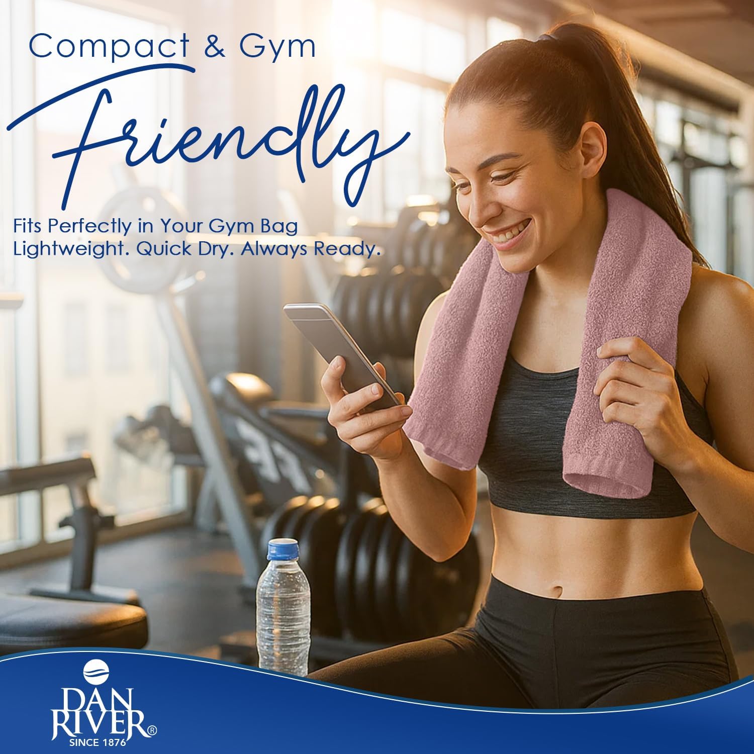 DAN RIVER 6-Pack Premium Hand Towels (16x28 Inches) - 100% Cotton, Ultra Soft, Lightweight, Highly Absorbent Towels for Bathroom, Spa, Gym, Salon, Hotel, and Travel - 550 GSM โ Dusty Pink