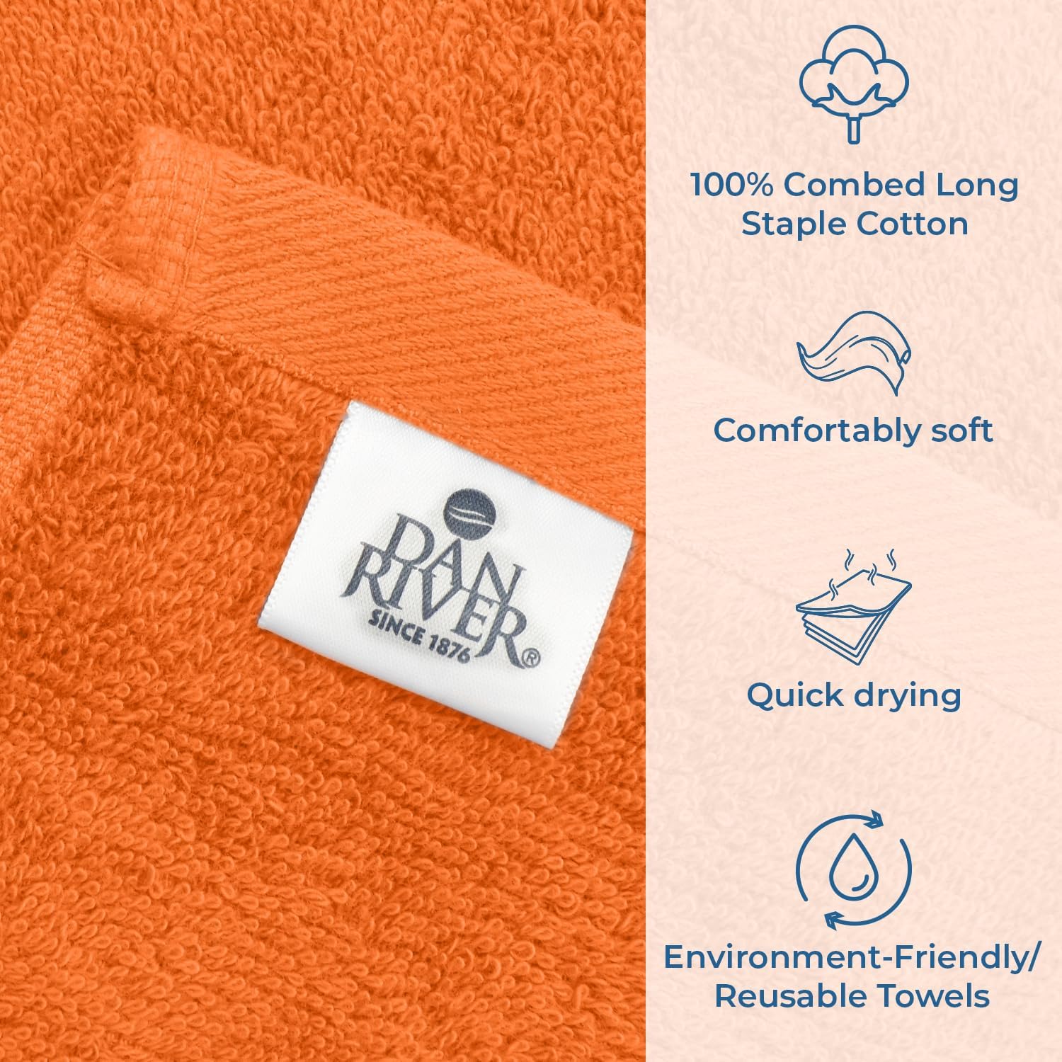 DAN RIVER Bath Towels Set of 4, 27 x 54 Inches, 100% Cotton, Larger & Lighter Weight, Quicker to Dry, Super Soft and Absorbent, Ideal Bathroom Towels Set for Daily Use, Orange