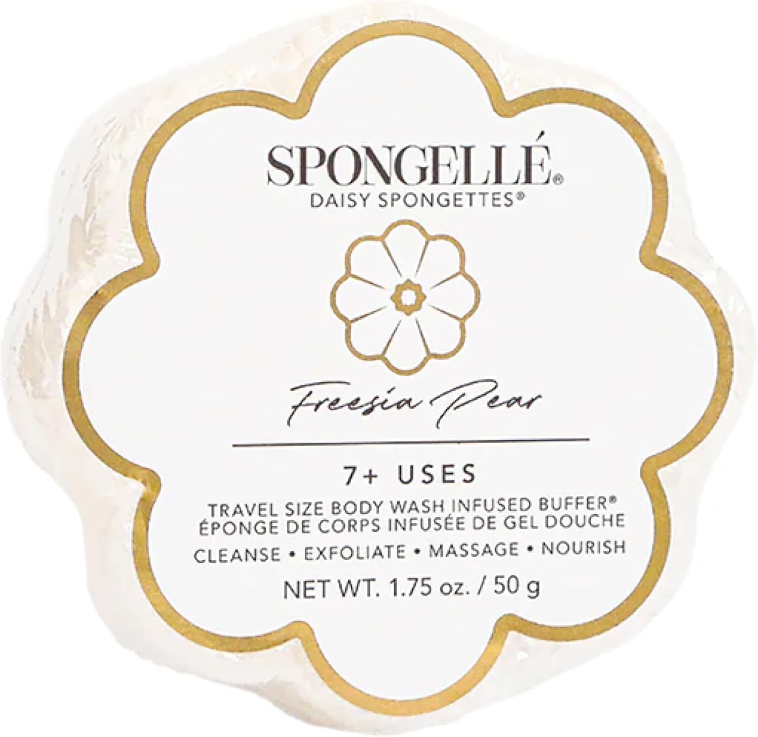 Spongelle Freesia Pear Spongette Loofah Body Scrubber | Bath & Shower Loofah for Women | Body Scrubber Exfoliator with Body Wash Infused Sponge | 5+ uses | Fresh Freesia, Juicy Pear & Musk