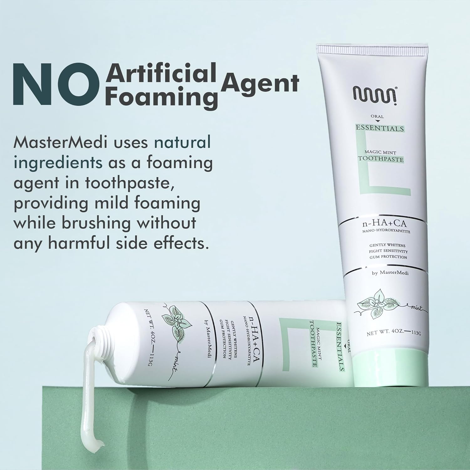 MasterMedi Nano Hydroxyapatite Toothpaste (Inspired by 10% nHA Formulas), Fluoride-Free, Whitening, Sensitive Teeth Care, Enamel Support, SLS Free, Xylitol, Magic Mint, 4 Oz (Pack of 1)