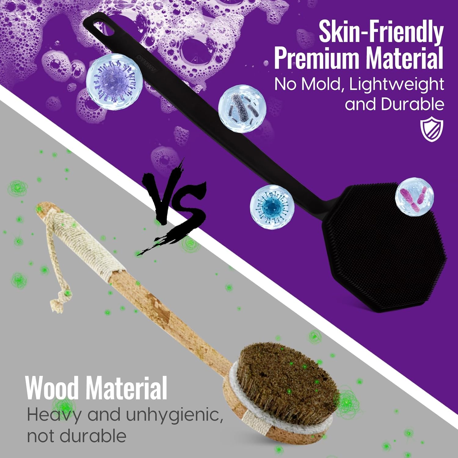 - 【BEST MATERIAL】This silicone body scrubber is made of food-grade silicone material, which is easy to clean, quick-drying, and residue-free. 35 times more hygienic than brushes/sponges of other materials. It has a long service life and does not need to be replaced frequently.