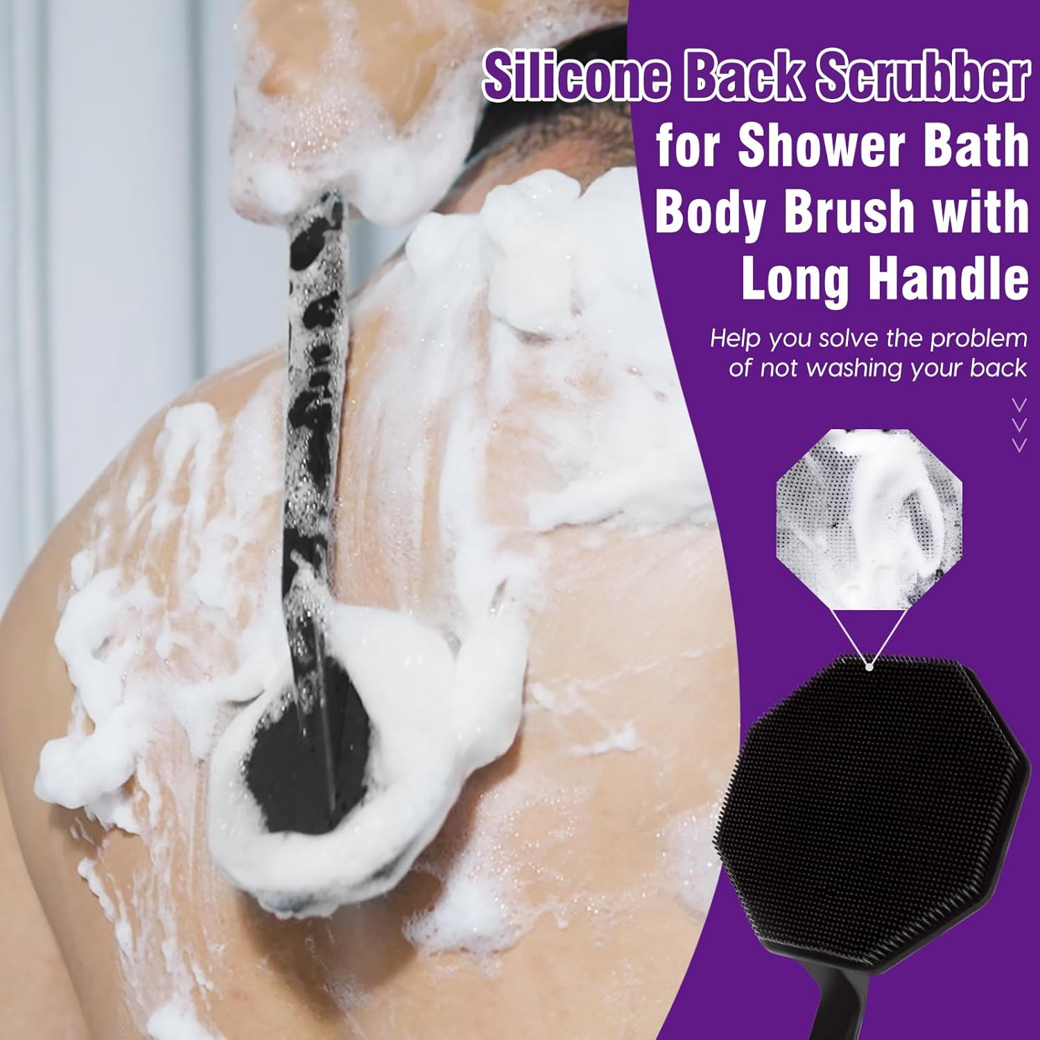 Silicone Back Scrubber for Shower,Back Washer for Shower Men, Lengthen Bath Body Brush with Long Handle, Brush for Shower Exfoliating and Massage Shower Brush - Black