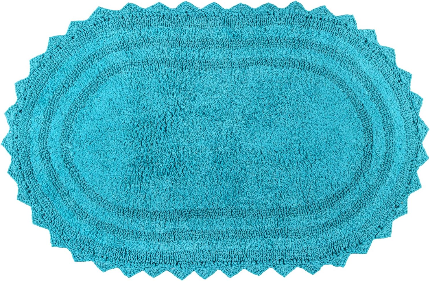 RAJRANG Pearled Bluebird Crochet Cotton Bath Mat | Reversible, Absorbent, Non-Slip Oval Rug for Bathroom, Spa & Kitchen | Machine-Washable, 34×21"