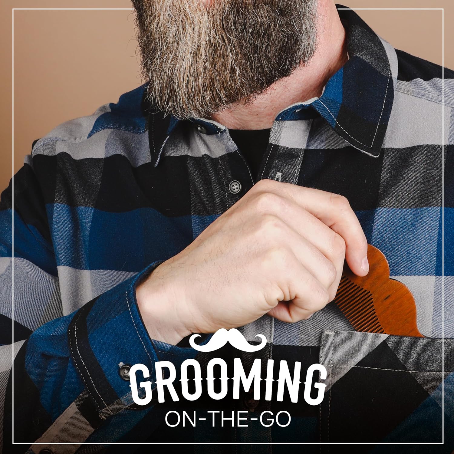 2-Piece Prazoli Mens Sandalwood Mustache, Beard & Hair Comb - Funny, Unique & Cool Gifts Ideas for Husband, Boyfriend, Dad & Man Anniversary | Fine Tooth Hair Care Grooming Set Kit | Mini Small Pocket