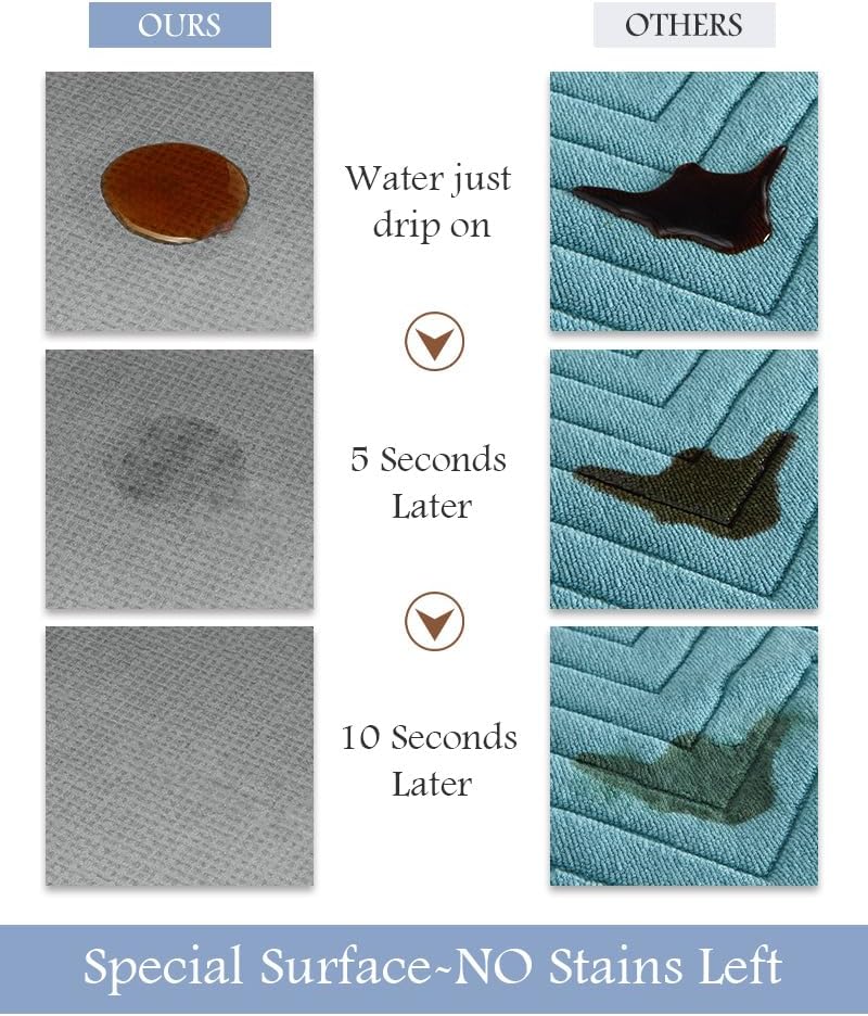 - Absorbent & Stain Resistant: Its specially engineered nano-porous smooth surface instantly absorbs dripping water, leaving no conspicuous watermarks or stains. Whether stepping out of the shower or washing your hands, you can trust this super absorbent bath mat to keep your space clean and safe.