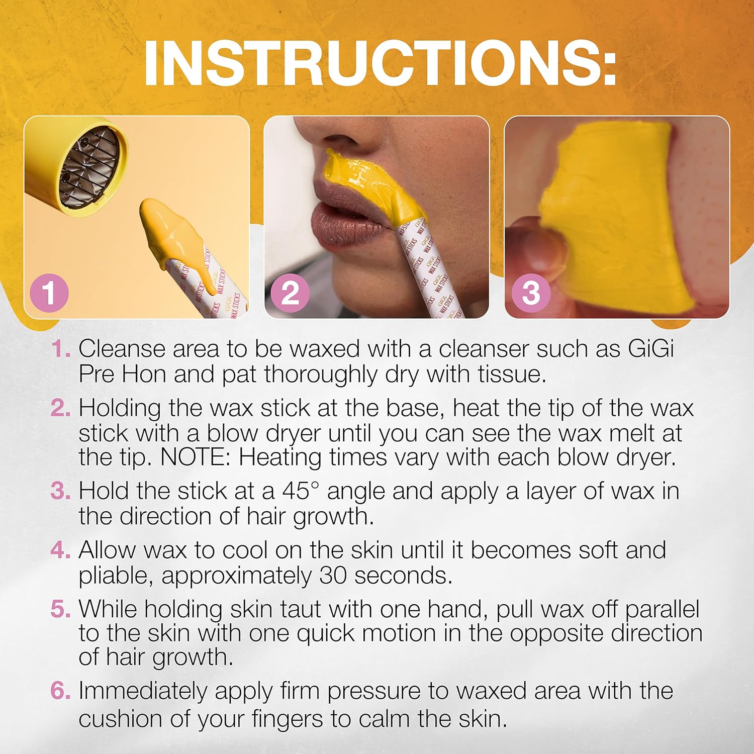 GiGi Wax Sticks for Hair Removal – Hard Wax Kit for Eyebrows, Upper Lip & Chin – No Strip Waxing Sticks, Easy to Use, Heats with Blow Dryer