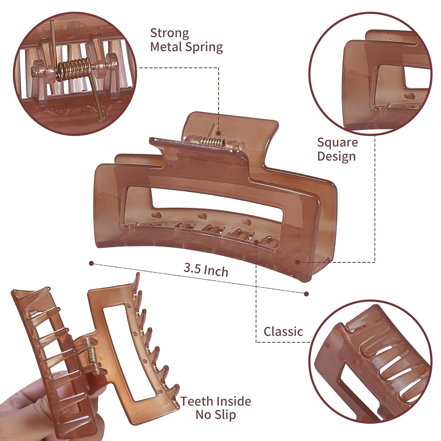 12 Pack Medium Square Claw Hair Clips, 3.5 x 2 x 1.1 inch, Shiny, 12 Colors, Hair Accessories for Women and Girls, Rectangular Rectangle Jaw Clips for Thick and Thin Hair Securing, 12 Pieces