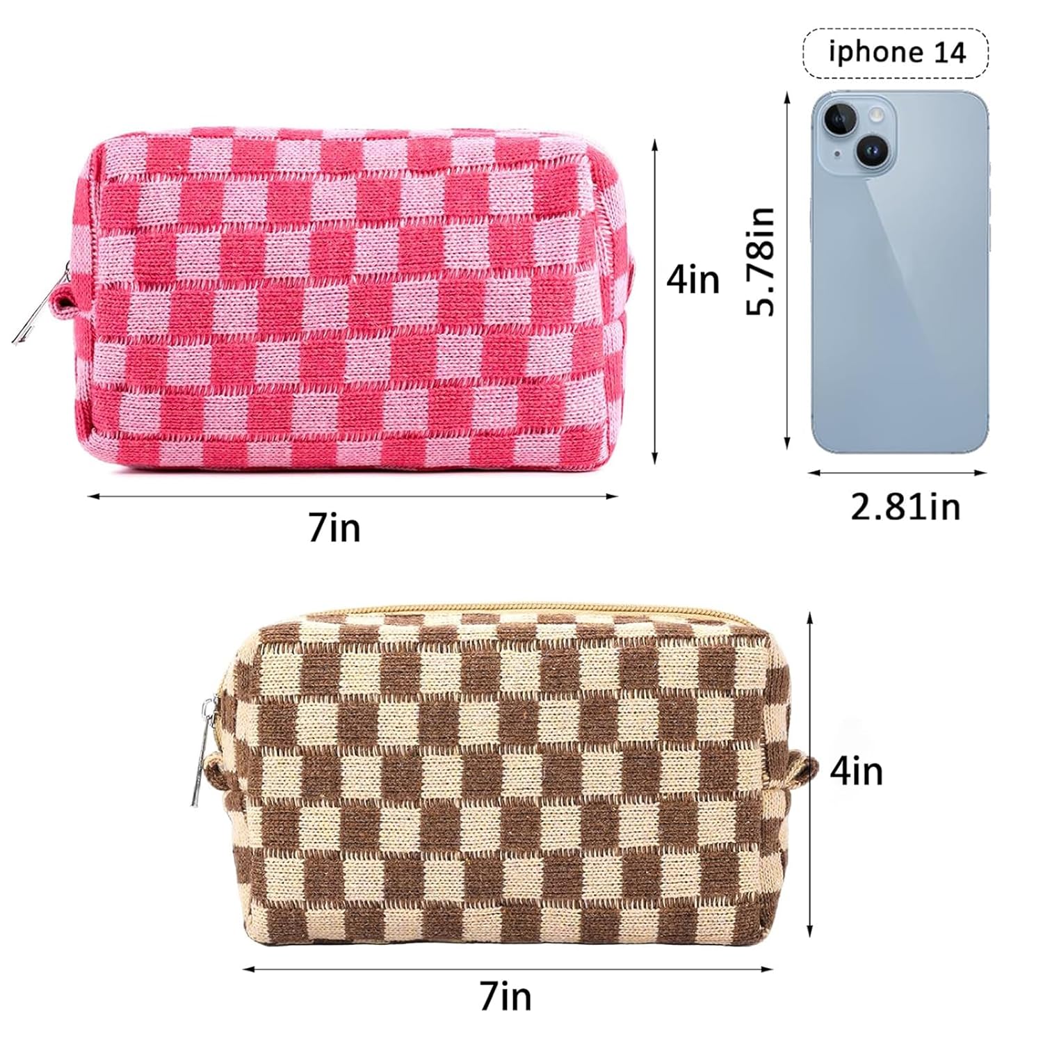 - LARGE CAPACITY AND PREMIUM MATERIAL: The cute makeup bag measure 7.1×4.3 inches, easy to carry. The checkered makeup bag is made of soft knitted fabric, easy to clean. The smaller ones can be used as pencil case or pencil pouch.This makeup travel bag can also hold small items such as makeup, skincare products, lipstick, eye shadow, eyebrow brush, etc. Makeup storage bag for women toiletries