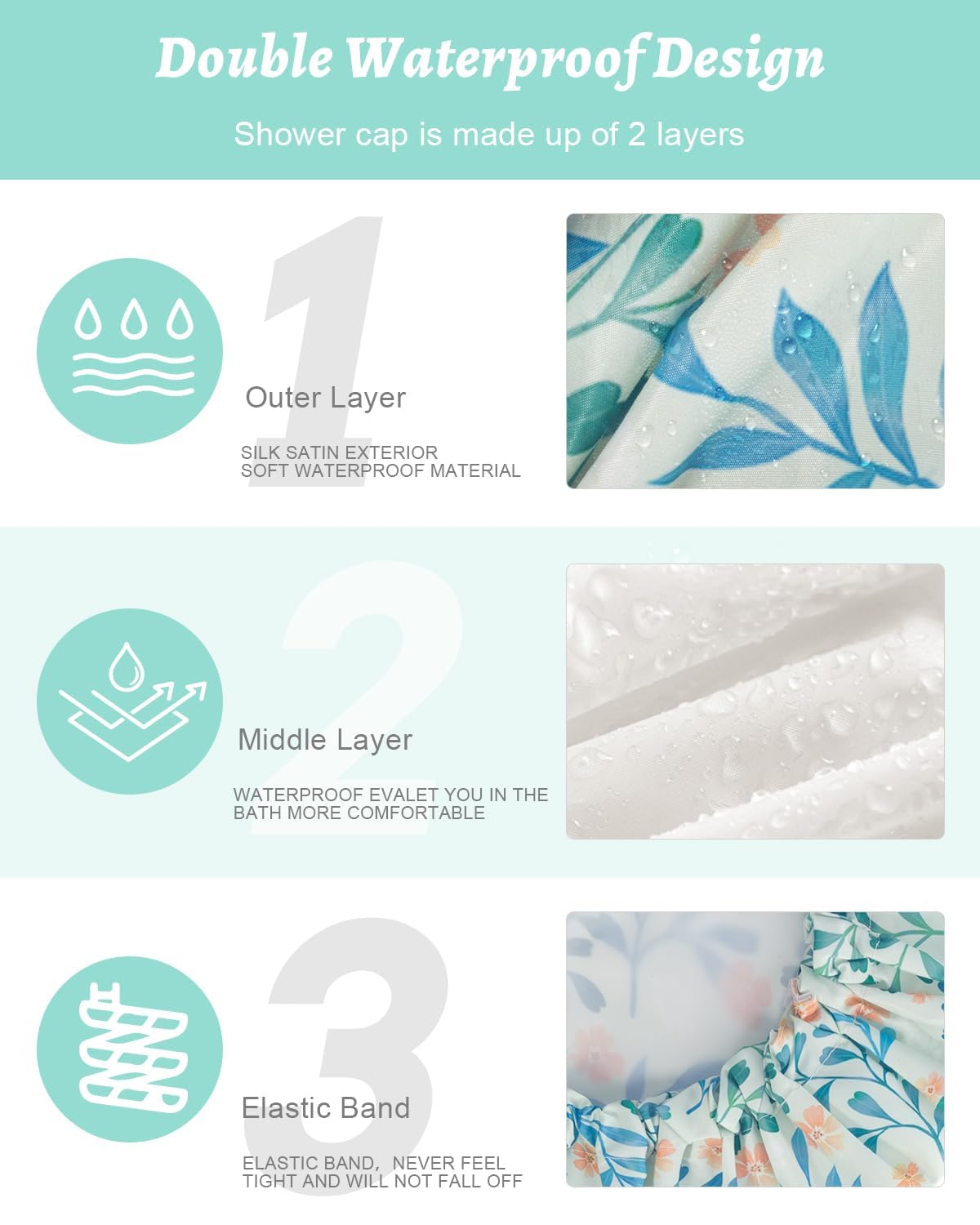 - [Double Waterproof Material]: Aquior shower caps with a layer of EVA protection inside, and polyester material outside, Protect your hair from all aspects