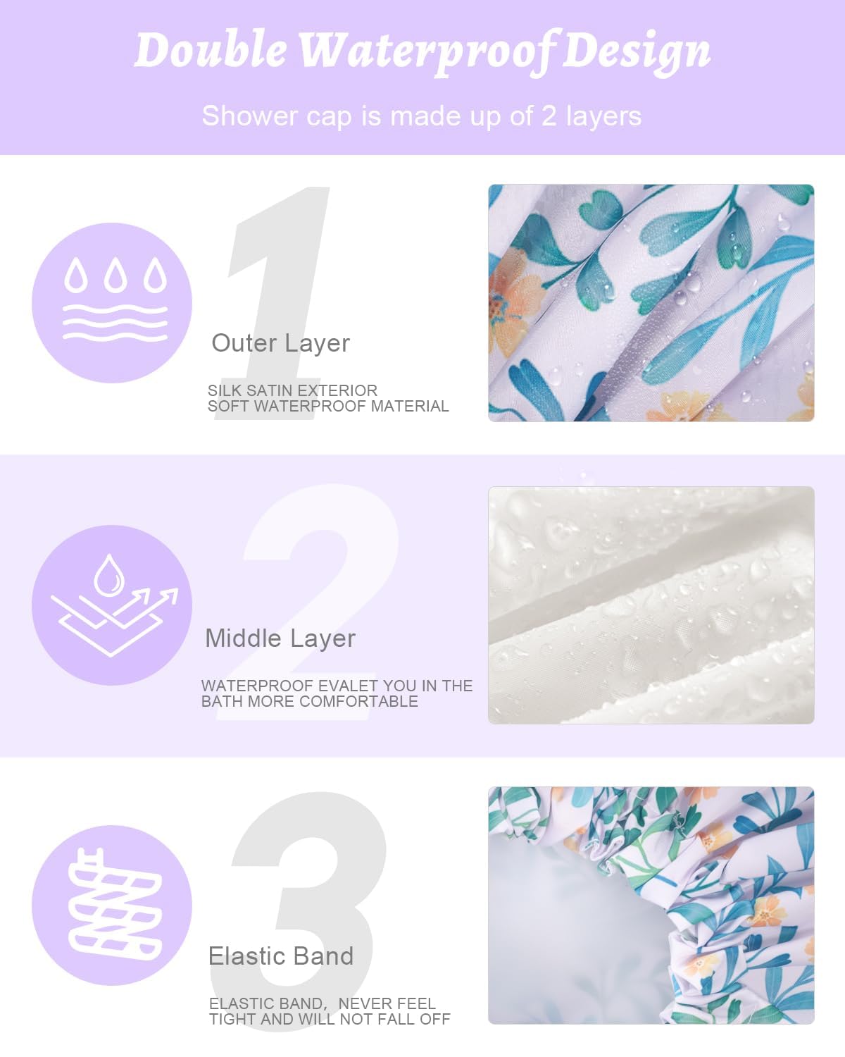 - [Reusable & No Fading]: Our Shower caps don't fade after many washes. Reusable shower cap is still soft and comfortable, and it dries very easily. A variety of patterns, as a gift is also a good choice