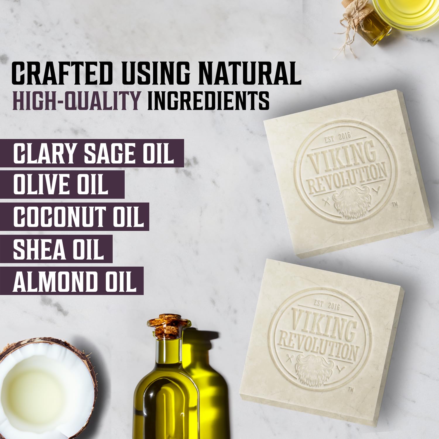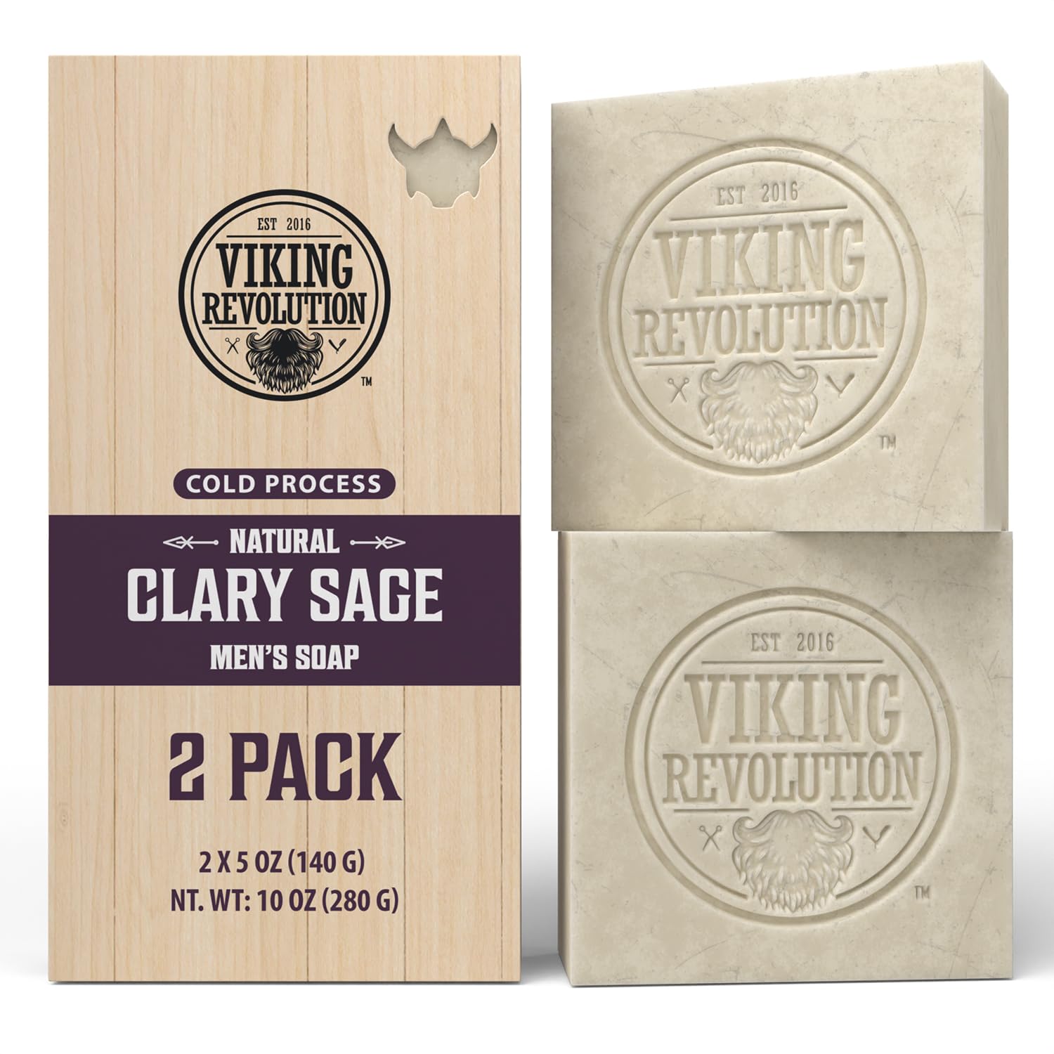 Viking Revolution Clary Sage Natural Soap for Men - Mens Soap Bar with Essential Oils Cold Pressed Bar Soap for Men - Nourishing Mens Bar Soap with Coconut Oil, Shea Oil, Almond Oil (2 Pack)