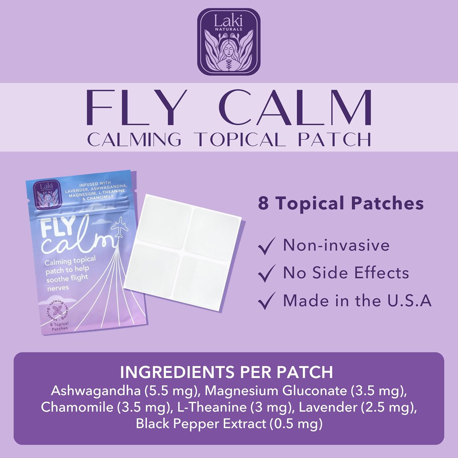 Laki Naturals Fly Calm Patch (Pack of 8) - Relax Nerves, Support Stress, Ease Your Mind for Happy Air Travel - Natural Ingredients to Support Airplane Stress - Calm Your Fear of Flying Naturally