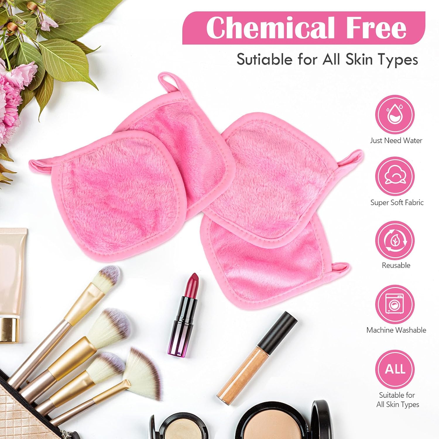 Orighty Makeup Remover Cloths 12 Pack, Makeup Removal Face Cleansing Cloth, Reusable Make-up Remover Pads Remove Instantly Dirt with Just Water, 5 x 5 in (Pink)