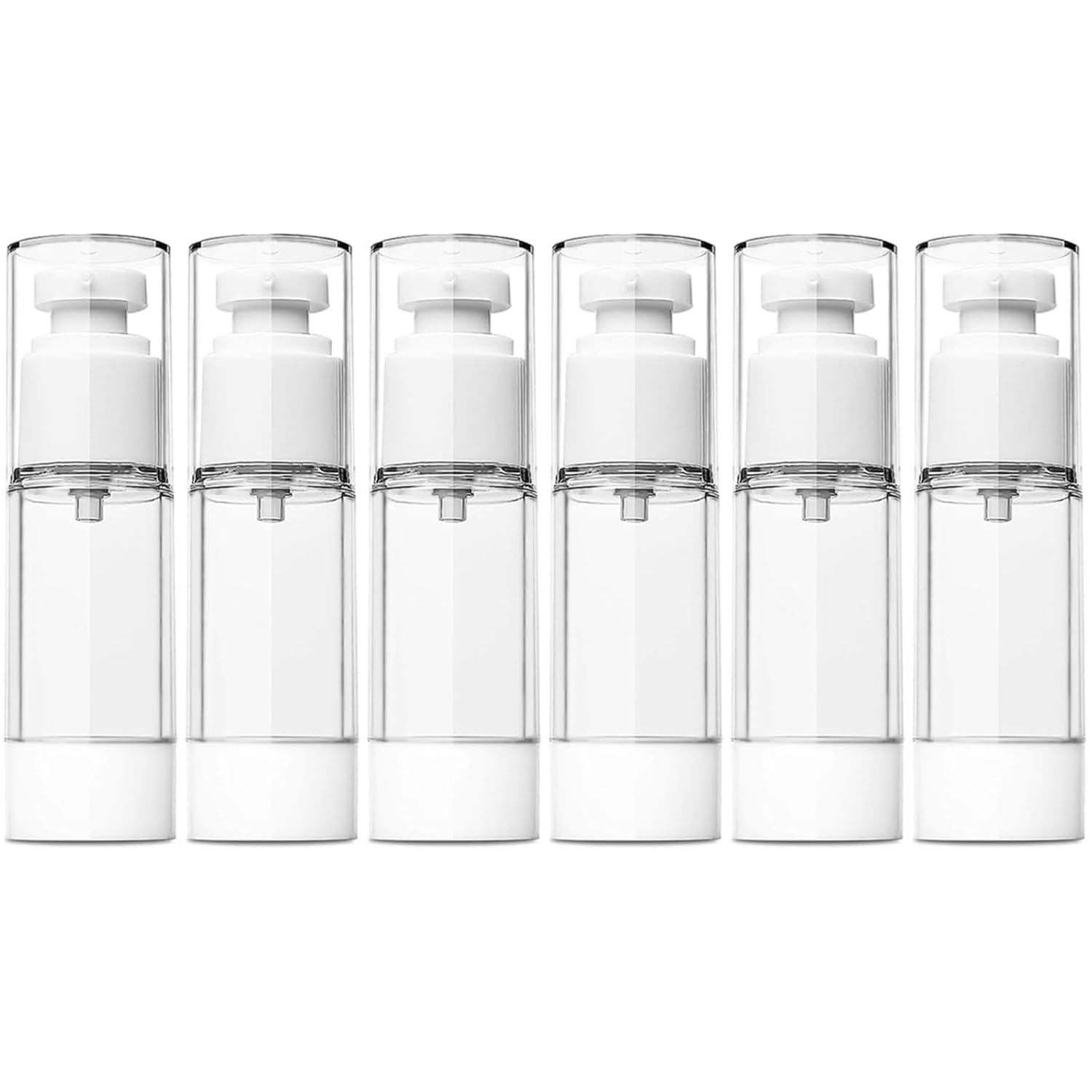 - Value Pack: You will get 6pcs 30 ml/1 oz airless pump bottles with lids, each measures approx. 1.3" Φ x 4.65" H (33mmx118mm), suitable for storing various types of cosmetics