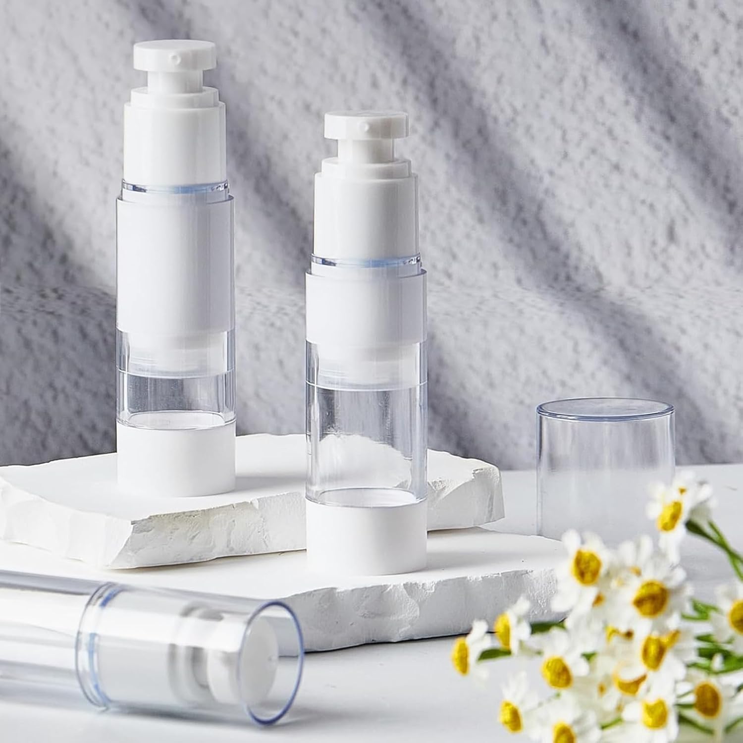 - Leakproof Cosmetic Containers: The refillable airless bottle has a tight screw bottle mouth design to prevent internal leakage of cosmetics, suitable for dispensing foundation, face creams, moisturizers, hand sanitizer, lotions or DIY skincare items in your bag or suitcase when you travel