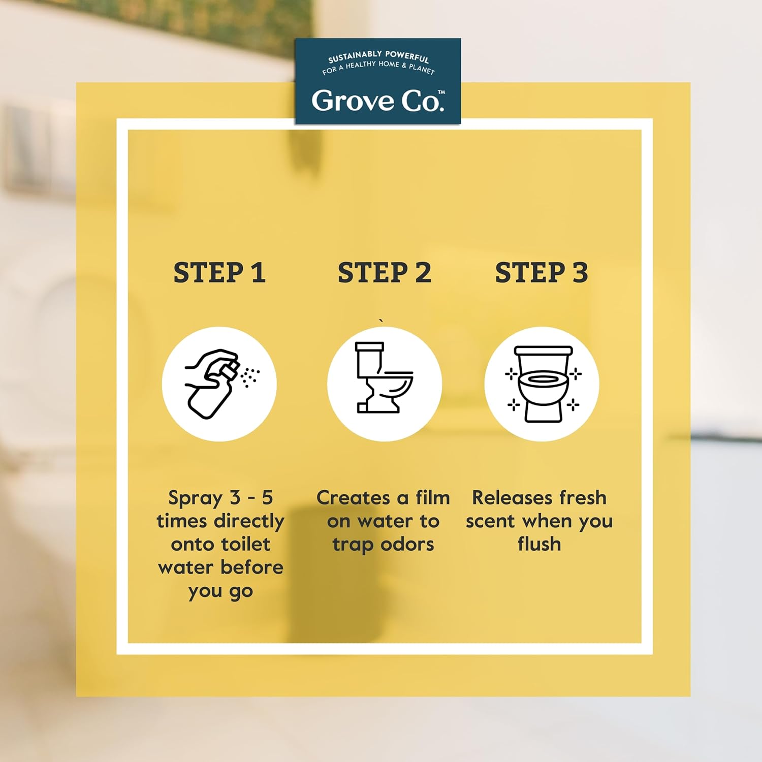 - SIMPLE TO USE: Simply spray Grove Co. Clear the Air Toilet Spray 3-5 times into the toilet bowl before use and let our toilet air freshener do its job. Features an easy-to-use, push-down spray top with cap, ensuring an odor-free experience in seconds