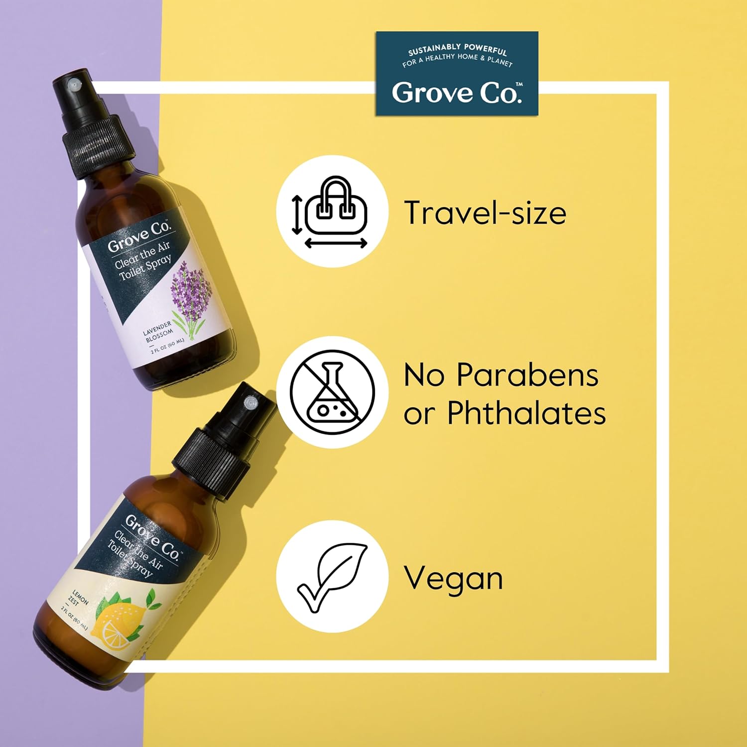- NATURAL SOLUTION TO TOILET ODOR: Before you go, be prepared with Grove Co. Clear the Air Toilet Spray, a toilet odor eliminator spray made with 100% natural fragrance. This lemon zest scented bathroom spray provides an effective solution to toilet odor