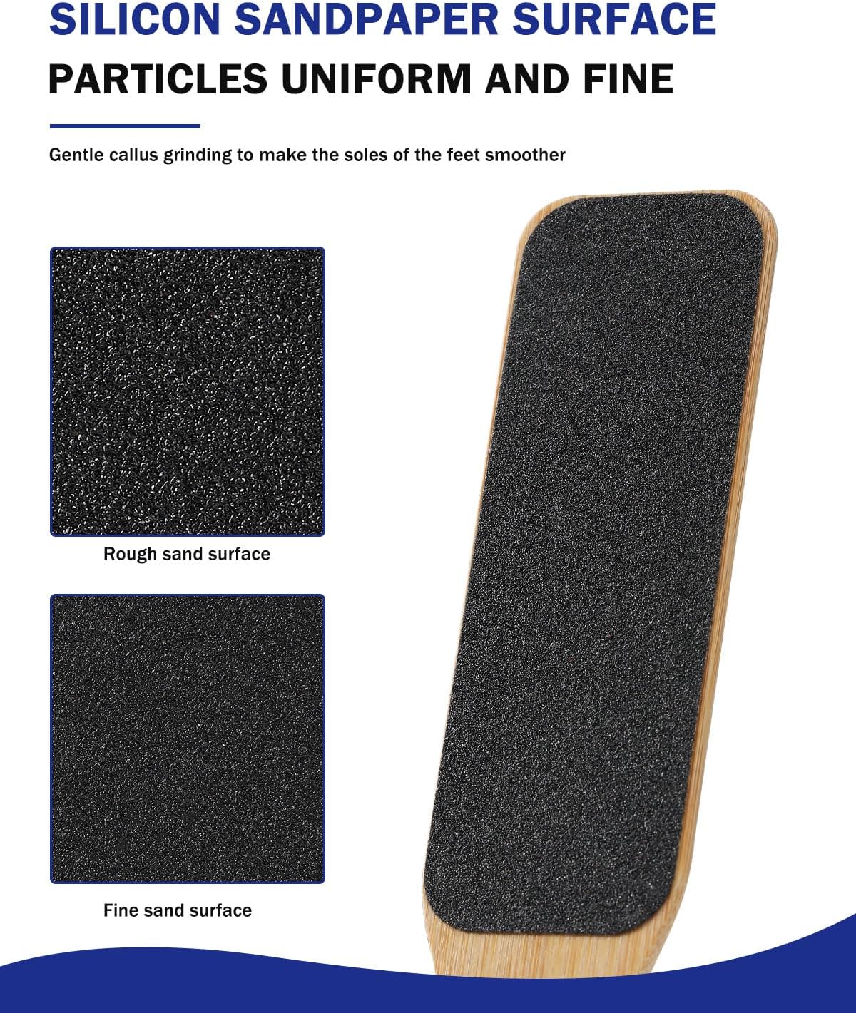 BEZOX Foot File Callus Remover with Bamboo Handle(1 PCS), Double-Sided Portable Foot Scrubber, Professional Pedicure Heel Sander for Smooth and Beautiful Feet - Dark