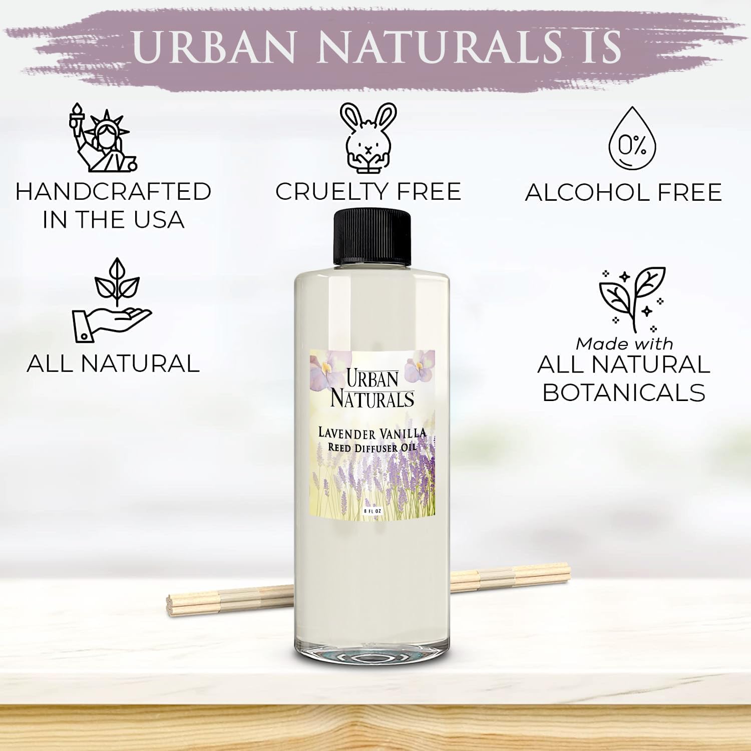 Urban Naturals Reed Diffuser Oil Refill Lavender Vanilla with Creamy Vanilla, White Woods 8 oz + Free Reed Sticks, Made in The USA