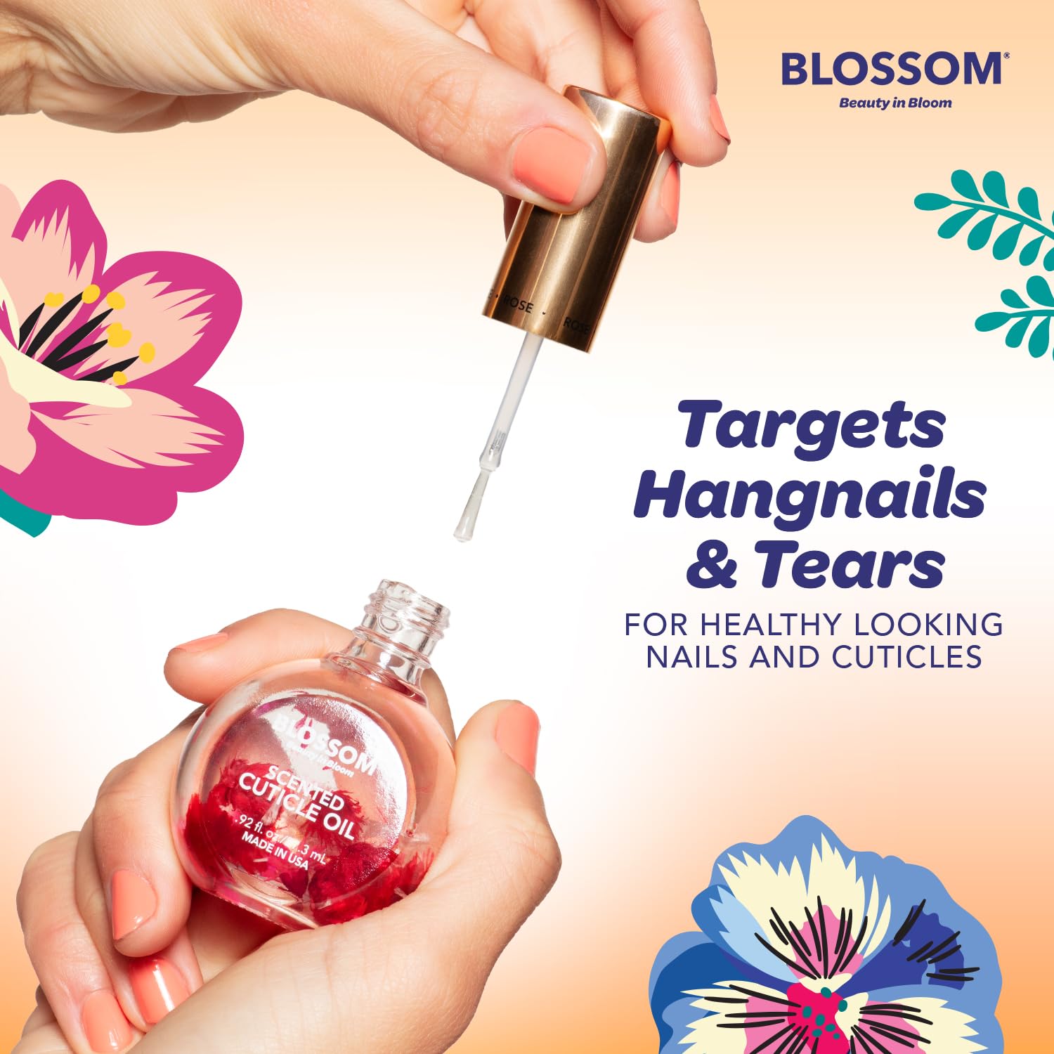- HYDRATE + REPAIR: All-natural cuticle oil for nail growth and strength hydrates and repairs dry cuticles with essential oils. Blossom nail moisturizer and nail oil for damaged nails softens, conditions and restores nails to their natural beauty.