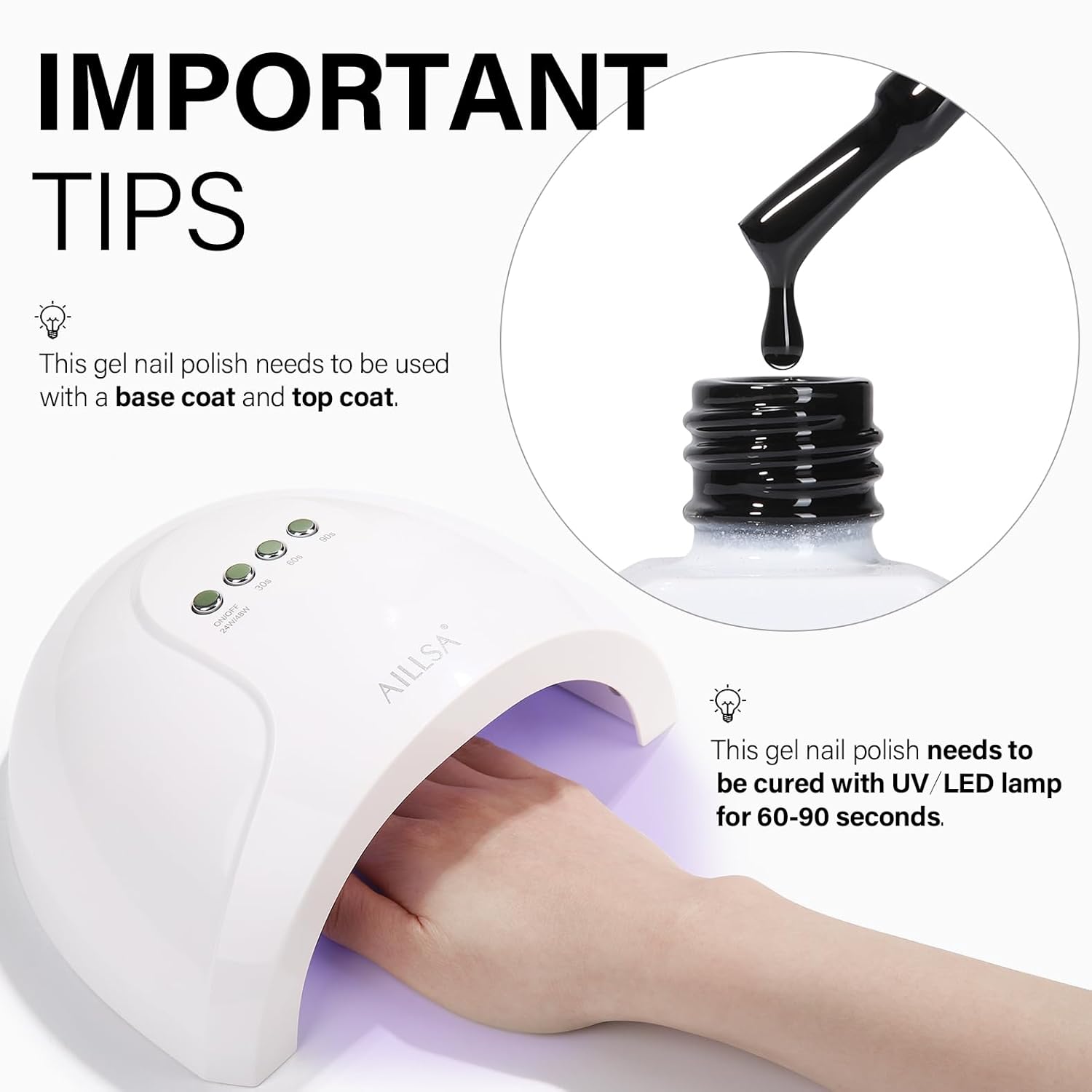 - Long Lasting 21+Days:AILLSA gel nail polish needs to be cured under u v lamp, under the correct use steps, it can last for 21-28 days and keep the shiny luster. You'll never have to worry about your nails peeling off while showering and doing housework. Let AILLSA serve you a longer time!