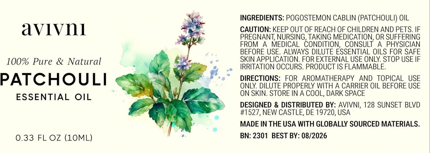 Avivni Patchouli Essential Oil - 100% Pure & Natural, Undiluted for Aromatherapy, Skin, Hair, Diffuser (0.33oz - 10ml)…