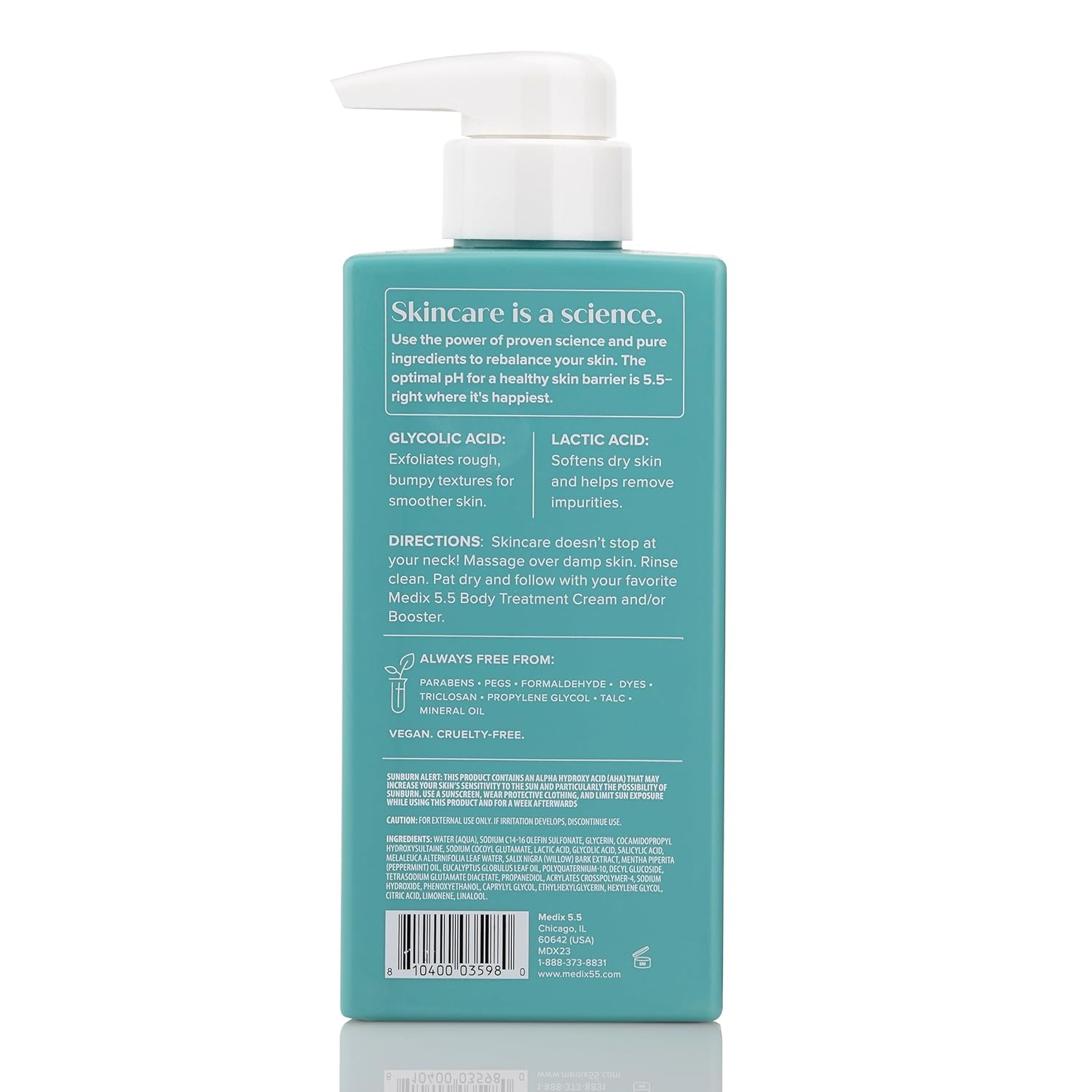 - SMOOTHING CLEANSE: Our glycolic acid body wash exfoliates and resurfaces rough and bumpy texture to reveal softer, smoother skin. The Alpha Hydroxy Acids within this exfoliating body wash prepares your skin for treatment body creams/lotions to effectively be applied by helping to remove the dry, dull skin that builds up on the surface of our skin. Dry skin can act like a shield that prevents active ingredients from penetrating.