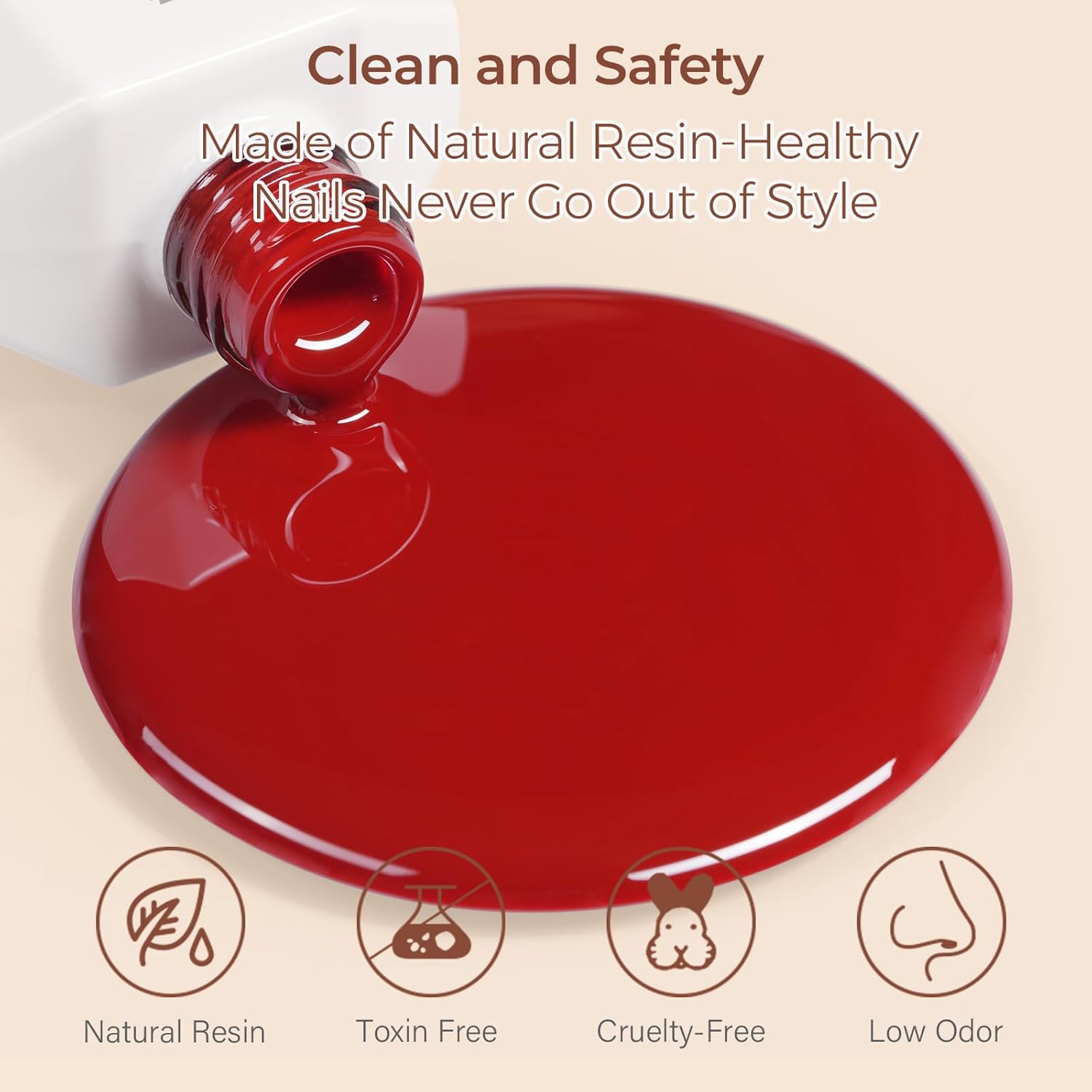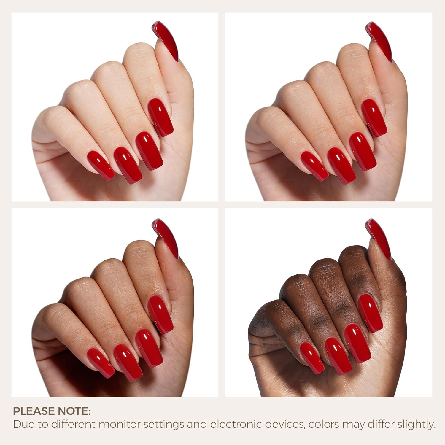- 【 STAY BEAUTIFUL IN ALL OCCASIONS 】This blood red gel nail polish is perfect for all year round, everyday life, and special events. It can be applied alone or paired with Valentine colors or glitter gels for a variety of jobs, outfits, and events to show off your unparalleled beauty.