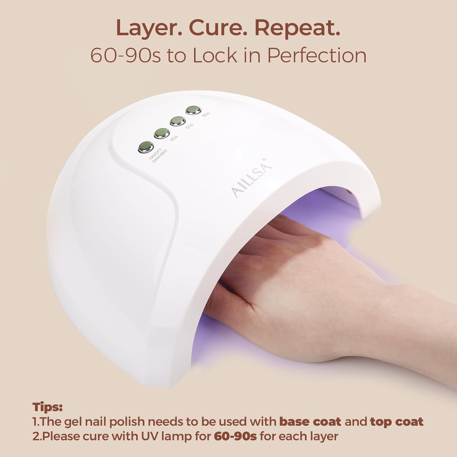 - 【 LONG-LASTING SHINE 】AILLSA carmine burgundy red gel nail polish needs to be cured under L E D/U V light, under the correct use steps, it can last for 21-28 days and keep the shiny luster. You'll never have to worry about your nails peeling off while showering and doing housework. Let AILLSA serve you a longer time!