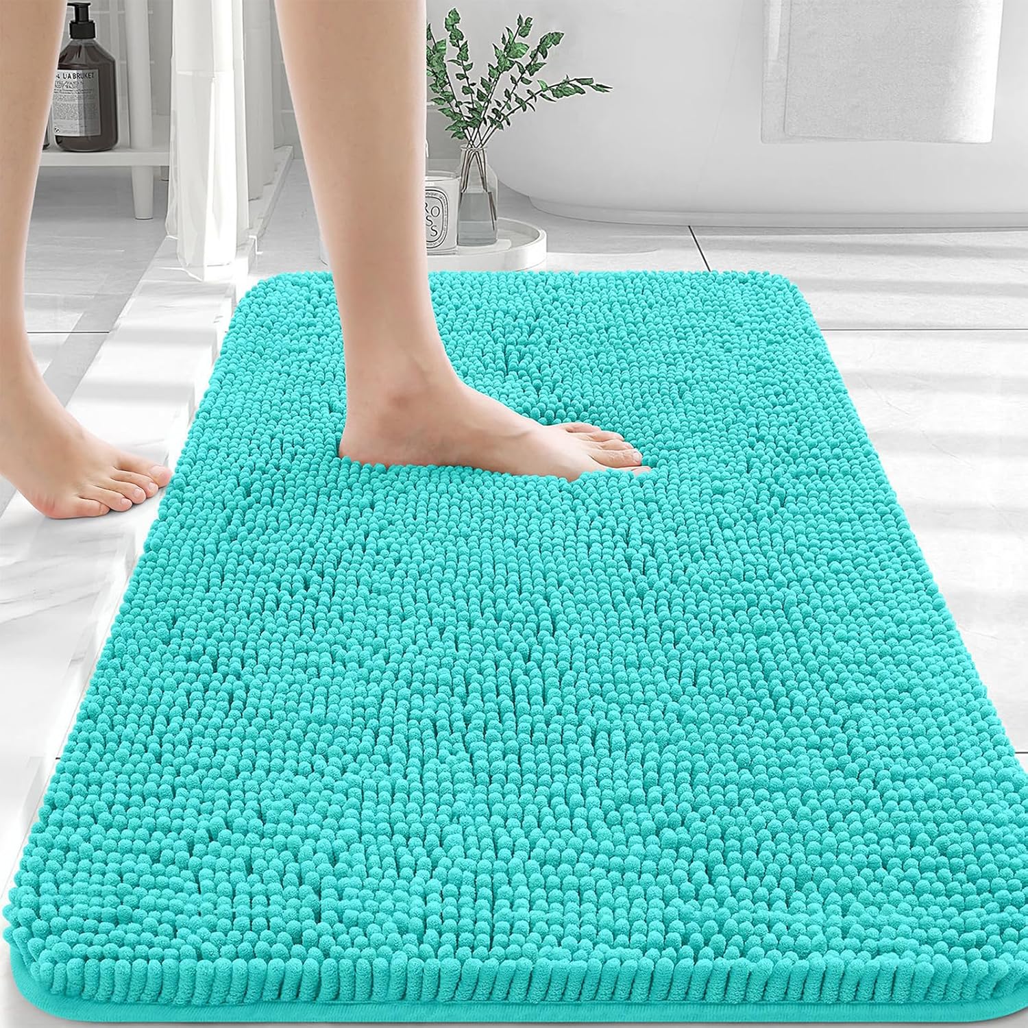 OLANLY Bathroom Rugs 30x20, Extra Soft Absorbent Chenille Bath Rugs, Rubber Backing Quick Dry, Machine Washable Bath Mats for Bathroom Floor, Tub and Shower, Home Decor Accessories, Teal