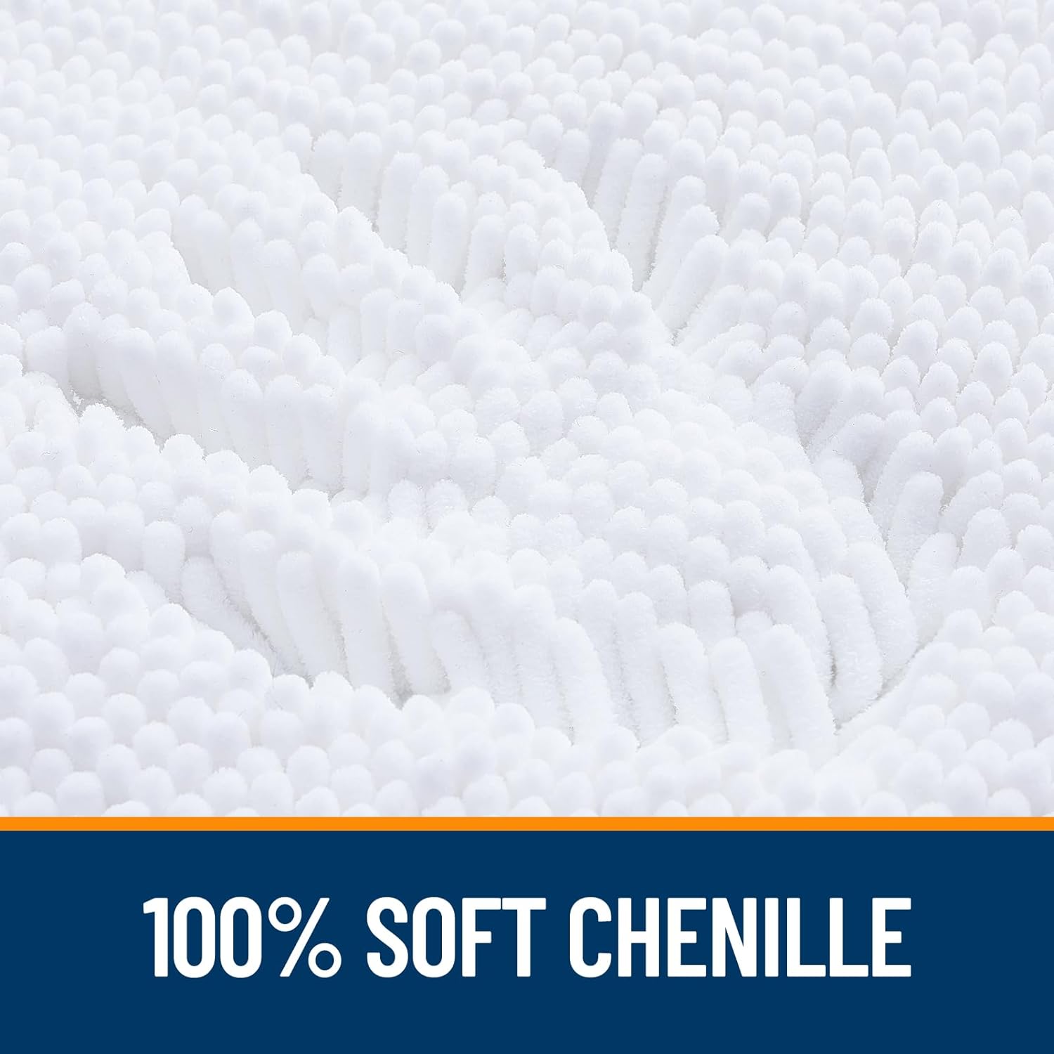 OLANLY Bathroom Rugs 59x20, Extra Soft Absorbent Chenille Bath Rugs, Rubber Backing Quick Dry, Machine Washable Bath Mats for Bathroom Floor, Tub and Shower, Home Decor Accessories, White